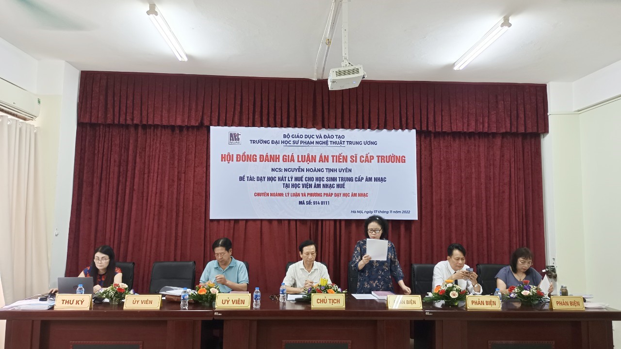 Hội đồng chấm Luận án đánh giá cao ý nghĩa khoa học, độ tin cậy và những đóng góp mới của Luận án, Hội đồng kết luận NCS Nguyễn Hoàng Tịnh Uyên xứng đáng nhận học vị tiến sĩ Lý luận và phương pháp dạy học Âm nhạc với 6/6 phiếu thông qua.