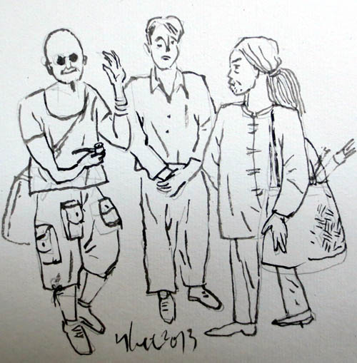 Buồn cười, hôm qua gặp hai họa sĩ tại một triển lãm nghệ thuật. Một cậu xưa nay tóc dày lòa xòa, hôm nay bay đâu hết. Một cái đầu trọc cạo đến nhẵn bóng nhìn rõ từng vết sẹo nhỏ trên da đầu. Anh chỉ tay vào đầu cười: “Khác biệt chưa?”. Tôi nhún vai chưa kịp trả lời thì anh tiếp: “Nghệ thuật là phải tìm ra sự khác biệt”. Tôi quay đi lại gặp một bạn vẽ khác: Hôm nay cái đầu trọc cố hữu biến mất, tóc anh đã dài ra tự bao giờ, lại còn buộc túm đuôi gà nữa chứ.