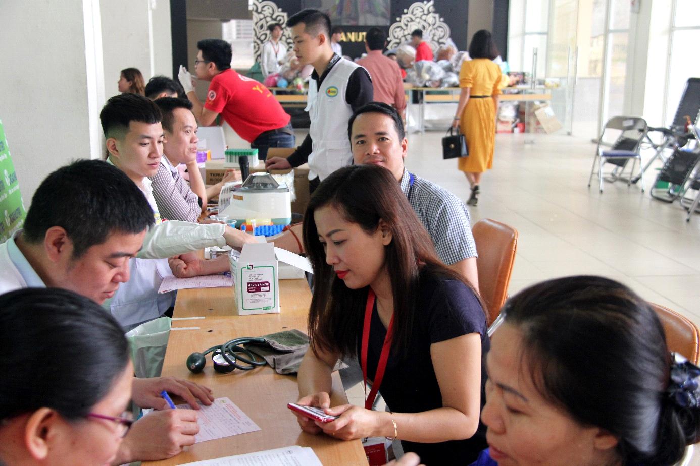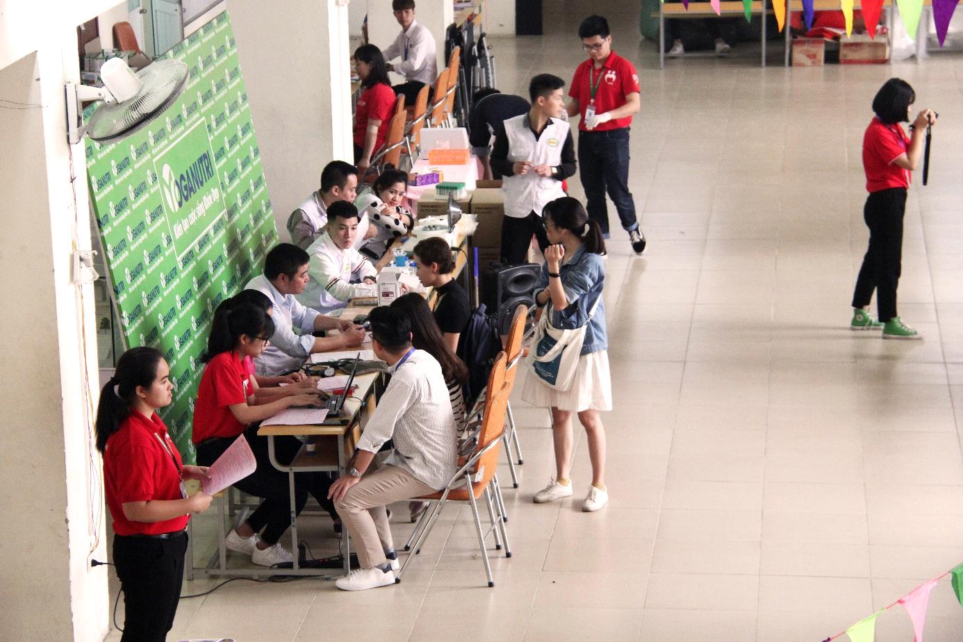 Đông đảo cán bộ, giảng viên, sinh viên nhà trường tham gia hiến máu