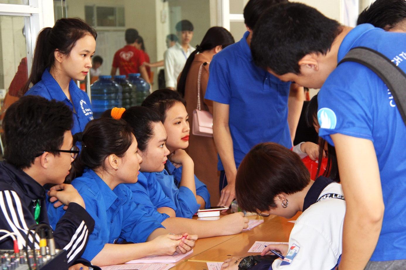 Đông đảo sinh viên nhà trường tham gia hiến máu