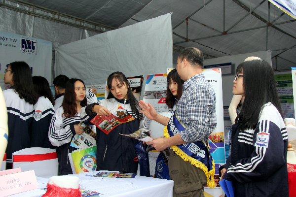 Tại khu vực tư vấn tuyển sinh của Trường ĐHSP Nghệ thuật TW, học sinh các trường trung học phổ thông trên địa bàn thành phố Vinh và Thanh Hóa tham gia ngày hội đã được giải đáp các câu hỏi về môn thi, mã ngành đào tạo, hình thức xét tuyển,…. Thông tin chi tiết về môn thi, khối thi, cơ hội việc sau khi ra trường không chỉ được thể hiện sinh động qua các tờ rơi, standy dựng ở khu vực tư vấn của Trường mà còn được các cán bộ tuyển sinh giải thích kỹ càng và hướng dẫn cụ thể cho từng học sinh.