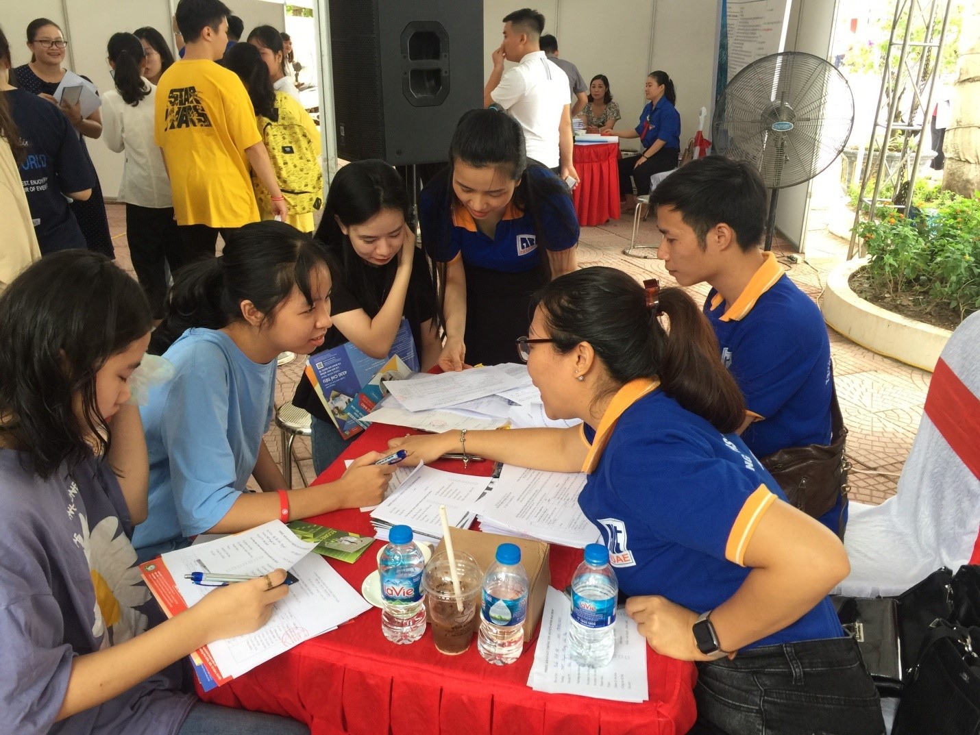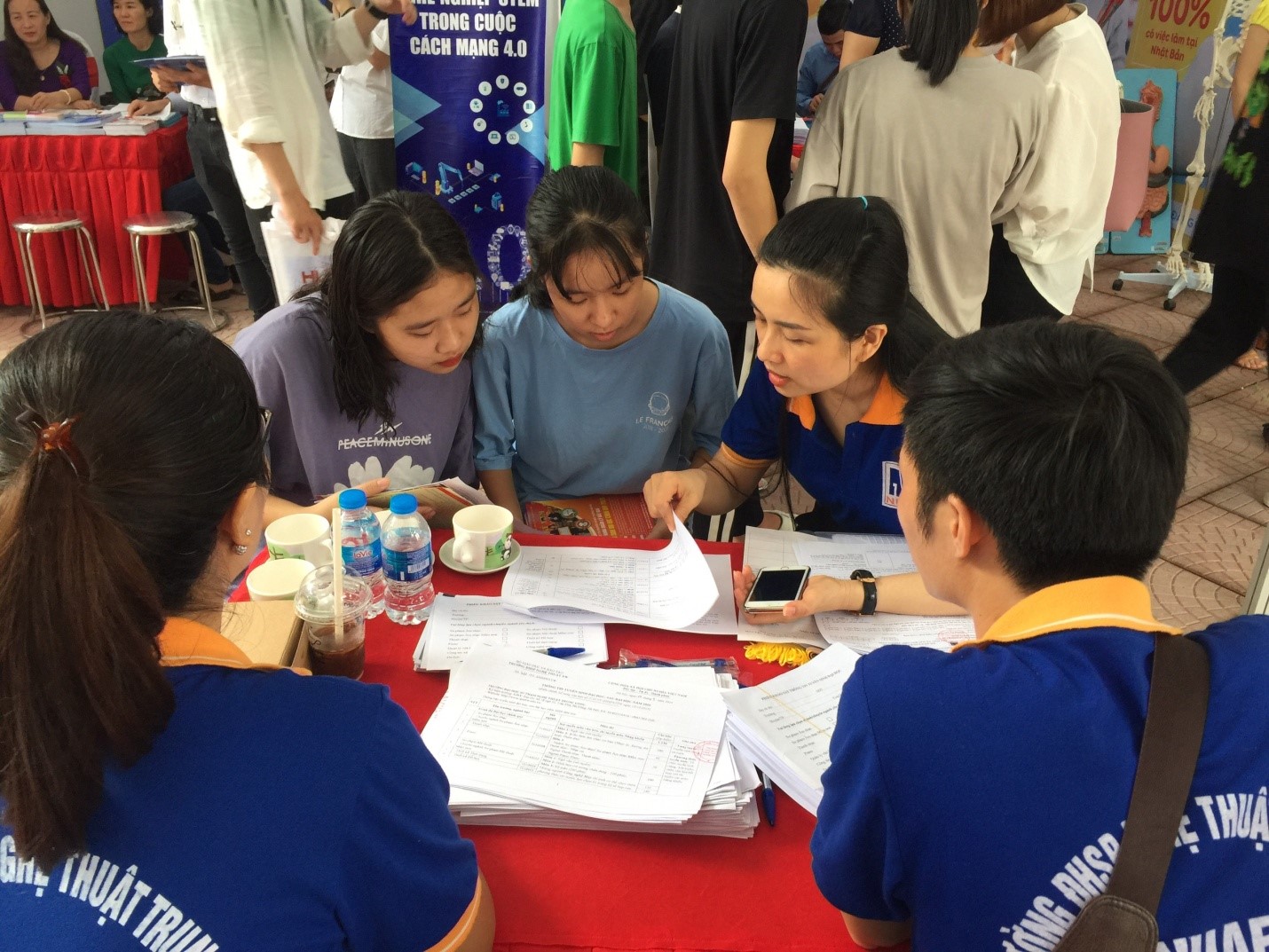 Cán bộ tư vấn tuyển sinh của Nhà trường nhiệt tình hướng dẫn học sinh về cách thức