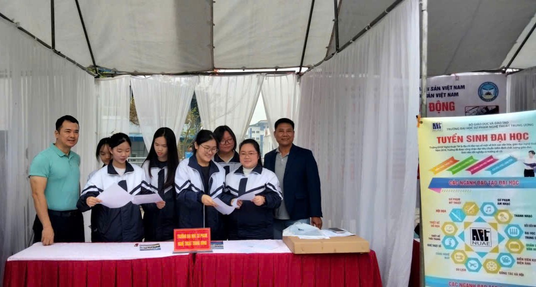 Góp phần quan trọng vào sự thành công của Ngày hội, đoàn công tác của Trường Đại học Sư phạm Nghệ thuật Trung ương (NUAE) do ThS. Lê Ngọc Chiến – Giám đốc Trung tâm Tuyển sinh và Hợp tác Đào tạo làm trưởng đoàn, đã trực tiếp tham gia tư vấn và hỗ trợ giải đáp thắc mắc của thí sinh. Với sự chuẩn bị chu đáo, gian tư vấn của NUAE đã trở thành điểm đến hấp dẫn cho những học sinh yêu thích lĩnh vực nghệ thuật. Đoàn công tác đã cung cấp đầy đủ thông tin về các ngành nghề đào tạo, phương thức xét tuyển và những ưu thế vượt trội khi học tập tại trường. Sự chuyên nghiệp và tận tâm của đội ngũ tư vấn NUAE không chỉ tạo ấn tượng tốt đẹp mà còn giúp các em học sinh Cao Bằng tự tin hơn khi theo đuổi đam mê nghệ thuật.