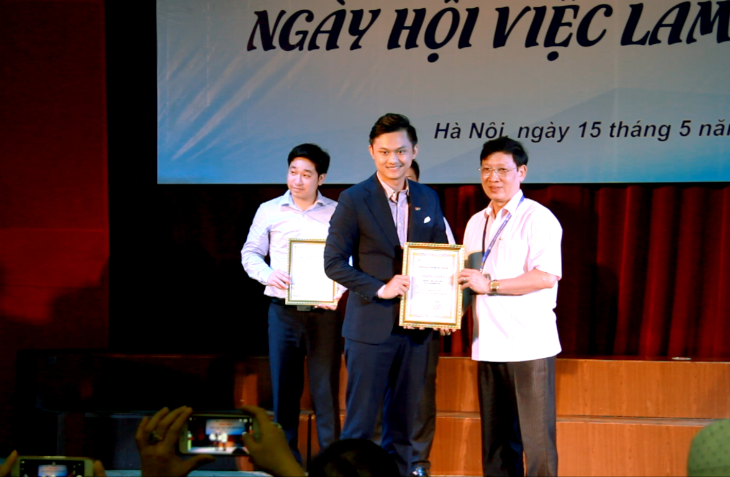 Cũng trong dịp này, đại diện các nhà tuyển dụng trao học bổng cho sinh viên Nhà trường và nhận giấy chứng nhận tham dự ngày hội của Trường ĐHSP Nghệ thuật TW.