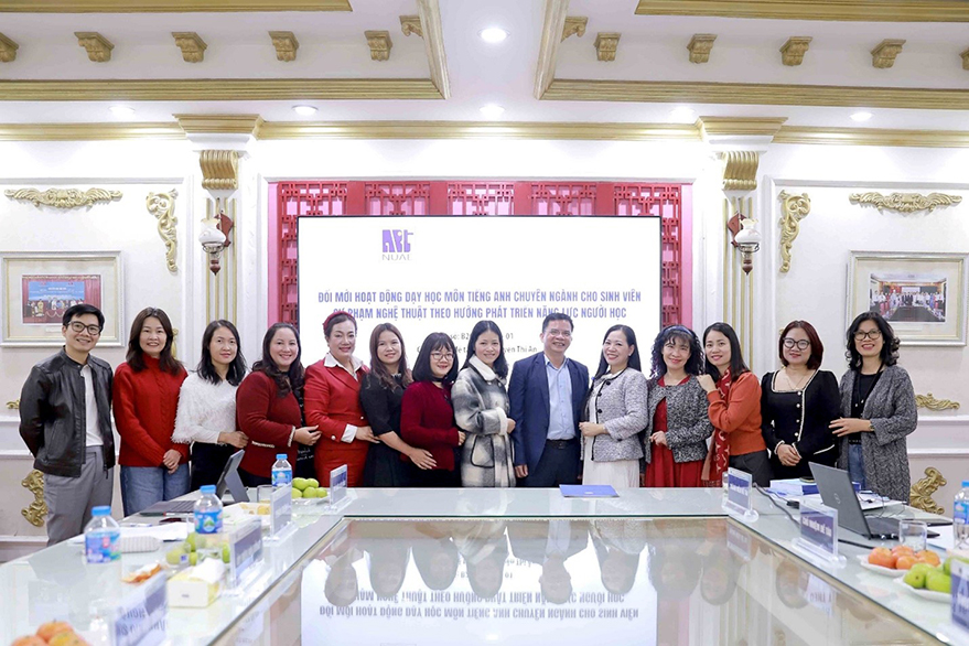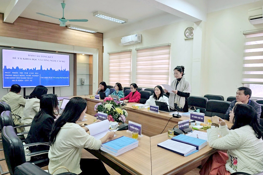 Trong bối cảnh đổi mới căn bản giáo dục đại học theo định hướng phát triển năng lực, đề tài “Đổi mới hoạt động dạy học môn tiếng Anh chuyên ngành cho sinh viên sư phạm nghệ thuật theo định hướng phát triển năng lực người học”, mã số: B2024-GNT-01 do ThS. Nguyễn Thị Ân làm chủ nhiệm đề tài tập trung đổi mới hoạt động dạy học tiếng Anh chuyên ngành cho sinh viên sư phạm nghệ thuật, đề xuất các mô hình và giải pháp phù hợp với đặc thù đào tạo, góp phần nâng cao hiệu quả học tập và năng lực nghề nghiệp của người học. Cùng hướng tới mục tiêu phát triển toàn diện sinh viên nghệ thuật, đề tài “Phát triển trí tuệ cảm xúc trong hoạt động nghề nghiệp cho sinh viên nghệ thuật”, mã số: B2024-GNT-02, Chủ nhiệm: TS. Lương Thị Thanh Hải đã xây dựng và hoàn thiện cơ sở lý luận, làm rõ các khái niệm và khung lý thuyết về phát triển trí tuệ cảm xúc trong hoạt động nghề nghiệp của sinh viên nghệ thuật; đồng thời khảo sát thực trạng và xác định các yếu tố ảnh hưởng trong đào tạo hiện nay. Trên cơ sở đó, đề xuất và thực nghiệm các biện pháp phát triển trí tuệ cảm xúc phù hợp với đặc thù các chuyên ngành nghệ thuật, cho thấy sự cải thiện rõ rệt về trí tuệ cảm xúc tổng thể và các năng lực cảm xúc thành phần, góp phần nâng cao hiệu quả hoạt động nghề nghiệp và chất lượng đào tạo.