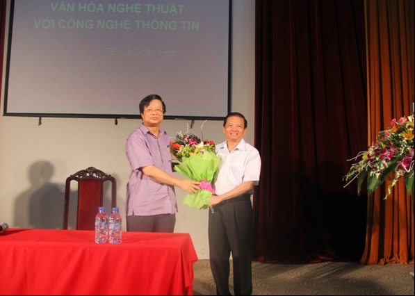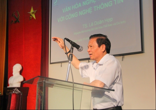 Nguyên Bộ trưởng Bộ Văn hóa Thể thao và Du lịch, TS. Lê Doãn Hợp nói chuyện chuyên đề “Văn hóa nghệ thuật với Công nghệ Thông tin” tại Trường ĐHSP Nghệ thuật TW.