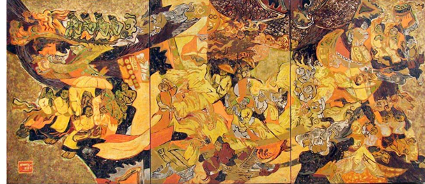 – “Hướng thiện 1” – Sơn mài; Triển lãm Việt Nam ASSAN Philip Moris năm 1998.