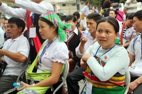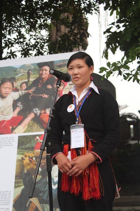 Chị Trương Thị Thủy, người dân tộc Mường, tỉnh Thanh Hóa nhớ lại những ngày đầu tiên: “Đoàn dự án đến thôn, tập hợp mọi người lại và hỏi xem có ai muốn tham gia chương trình. Thôn bầu lên 6 người, trong đó có em. Nhưng 5 người kia từ chối, có mỗi mình em là không từ chối” – chị cười, khán giả cũng bật cười theo – “Lúc đầu nói chuyện chụp ảnh, kể chuyện bằng hình ảnh em cũng không hiểu gì cả, nhưng có mấy anh chị trong thôn bảo “Hay là nó biết đi làm dự án được nhiều tiền hay sao mà không từ chối”. Em thấy buồn, nhưng tự nhủ “Thôi thì mình đi cho biết”. Sau đó mọi người thấy được nói lên bản sắc văn hóa của mình thì cũng ủng hộ“.
