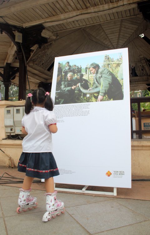 “Văn hóa thuộc về nhân dân”, đó là thông điệp của 150 bức ảnh tại triển lãm ngoài trời nằm giữa khu vực đẹp nhất thủ đô, được chụp bởi 64 “tay máy” hoàn toàn nghiệp dư đến từ 9 nhóm cộng đồng dân tộc thiểu số suốt dọc chiều đất nước.