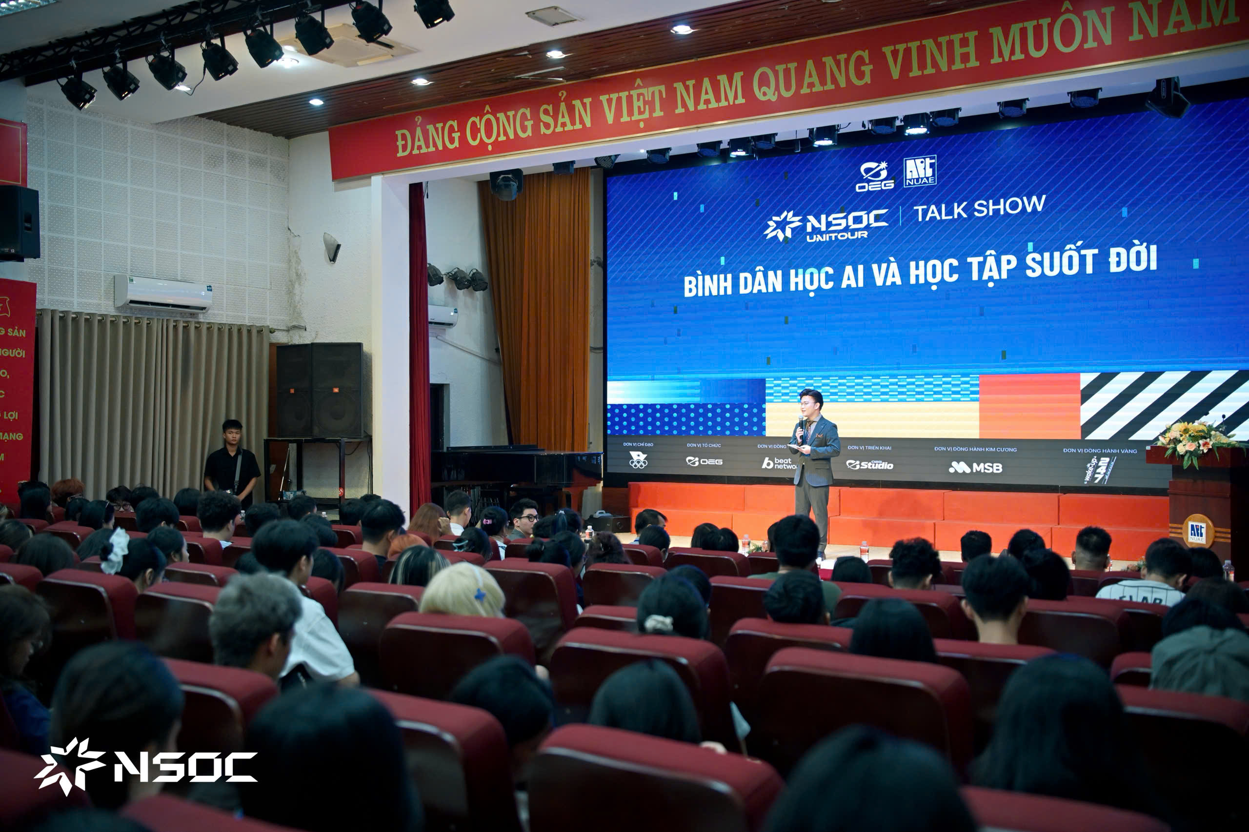 NSOC Unitour 2025 được thiết kế như một ngày hội đa sắc màu, bao gồm nhiều hoạt động phong phú như Talkshow Bình dân học AI và Định hướng nghề nghiệp thời đại số; Giao lưu cùng các KOLs nổi tiếng trong giới eSports; Chương trình âm nhạc; Trình diễn cosplay đặc sắc cùng hàng loạt hoạt động trải nghiệm với vô vàn phần quà hấp dẫn… Đặc biệt, NSOC Unitour tại Trường ĐHSP Nghệ thuật thực sự “bùng nổ” với màn xuất hiện của ba cái tên đình đám: 24K.RIGHT – Á quân Rap Việt mùa 3, YANBI – một trong những ca sĩ kỳ cựu của làng R&B, KHANG KI – nghệ sĩ trẻ tài năng bước ra từ “Tân binh toàn năng”, khiến khán giả không ngừng hò reo, tạo nên bầu không khí sôi động suốt chương trình.