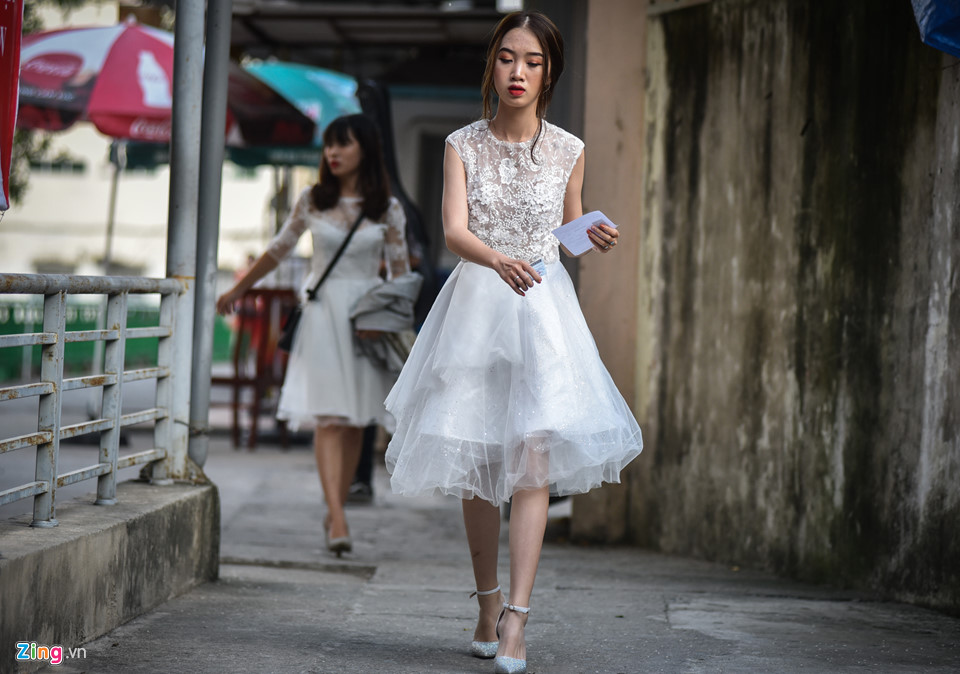 Trong trang phục đẹp mắt, gợi cảm, nhiều nữ sinh tỏ ra tự tin trong buổi thi năng khiếu vào các ngành nghệ thuật của Đại học Sư phạm Nghệ thuật Trung ương.