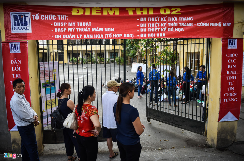 Thí sinh dự thi các ngành Mỹ thuật, Hội hoạ, Thiết kế… đến sớm nhất bởi phải mất nhiều thời gian làm thủ tục, gửi đồ, kiểm tra thiết bị trước khi vào phòng thi.