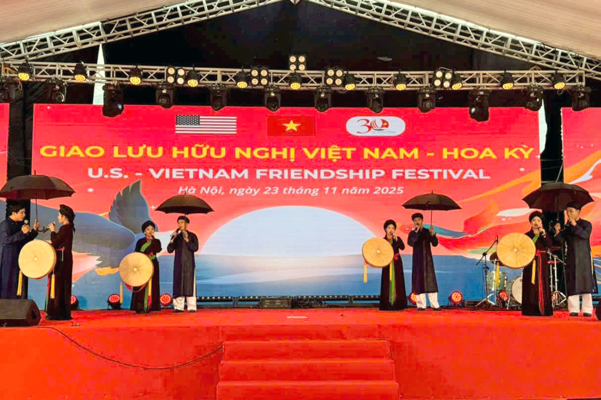 Ngày 23/11, tại Hà Nội, Liên hiệp các tổ chức hữu nghị Việt Nam, Phái đoàn Ngoại giao Hoa Kỳ tại Việt Nam và UBND thành phố Hà Nội phối hợp tổ chức chương trình “Giao lưu hữu nghị Việt Nam – Hoa Kỳ”. Trong khuôn khổ sự kiện, sinh viên Trường ĐHSP Nghệ thuật TW đã tham gia biểu diễn tiết mục dân ca Quan họ Bắc Ninh “Mời nước mời trầu”, góp phần mang đến sắc màu nghệ thuật truyền thống và tạo điểm nhấn ấn tượng trong không gian giao lưu văn hóa giữa nhân dân hai nước.