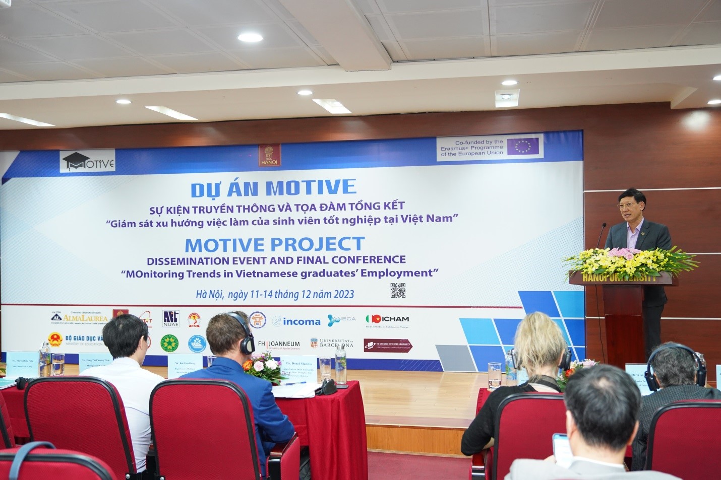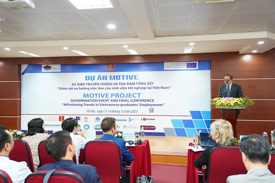Mở đầu sự kiện, PGS,TS. Nguyễn Văn Trào, Hiệu trưởng Trường Đại học Hà Nội đã phát biểu khai mạc và chào mừng các trường đại học thành viên, đồng thời, nhấn mạnh tầm quan trọng và ý nghĩa thực tiễn của dự án. Trong thời điểm hiện tại, với sự cạnh tranh toàn cầu về nhân lực lao động, xu hướng dịch chuyển học thuật toàn cầu và sự phát triển của hợp tác nghiên cứu quốc tế, cần có sự hợp tác chặt chẽ hơn giữa các tổ chức giáo dục đại học tại Việt Nam và trên thế giới. Thông qua sự kiện này, PGS,TS. Nguyễn Văn Trào cũng gửi lời cảm ơn các trường đại học, đối tác đã cùng nhau thực hiện thành công dự án MOTIVE trong 4 năm vừa qua.