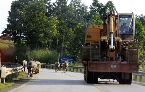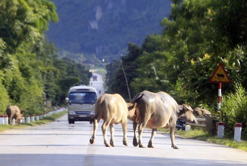 Dọc đường Hồ Chí Minh đoạn qua các tỉnh Hòa Bình, Ninh Bình, Thanh Hóa, Nghệ An ngoài những “siêu xe” lăn bánh còn có cả trâu bò đi lại dưới lòng đường. Nhiều trường hợp xe cấp cứu đi tới cũng phải giảm tốc độ, thậm chí dừng hẳn lại để tránh đường.