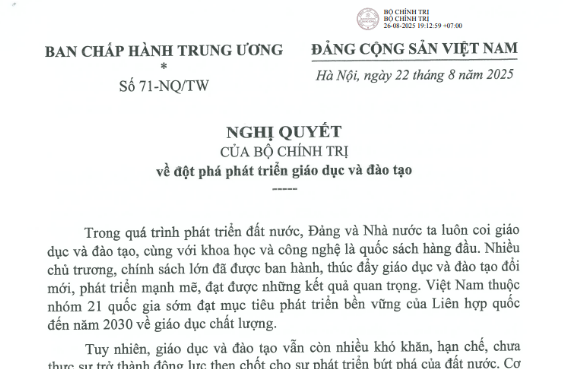 Nghị quyết của Bộ chính trị về đột phá phát triển giáo dục và đào tạo