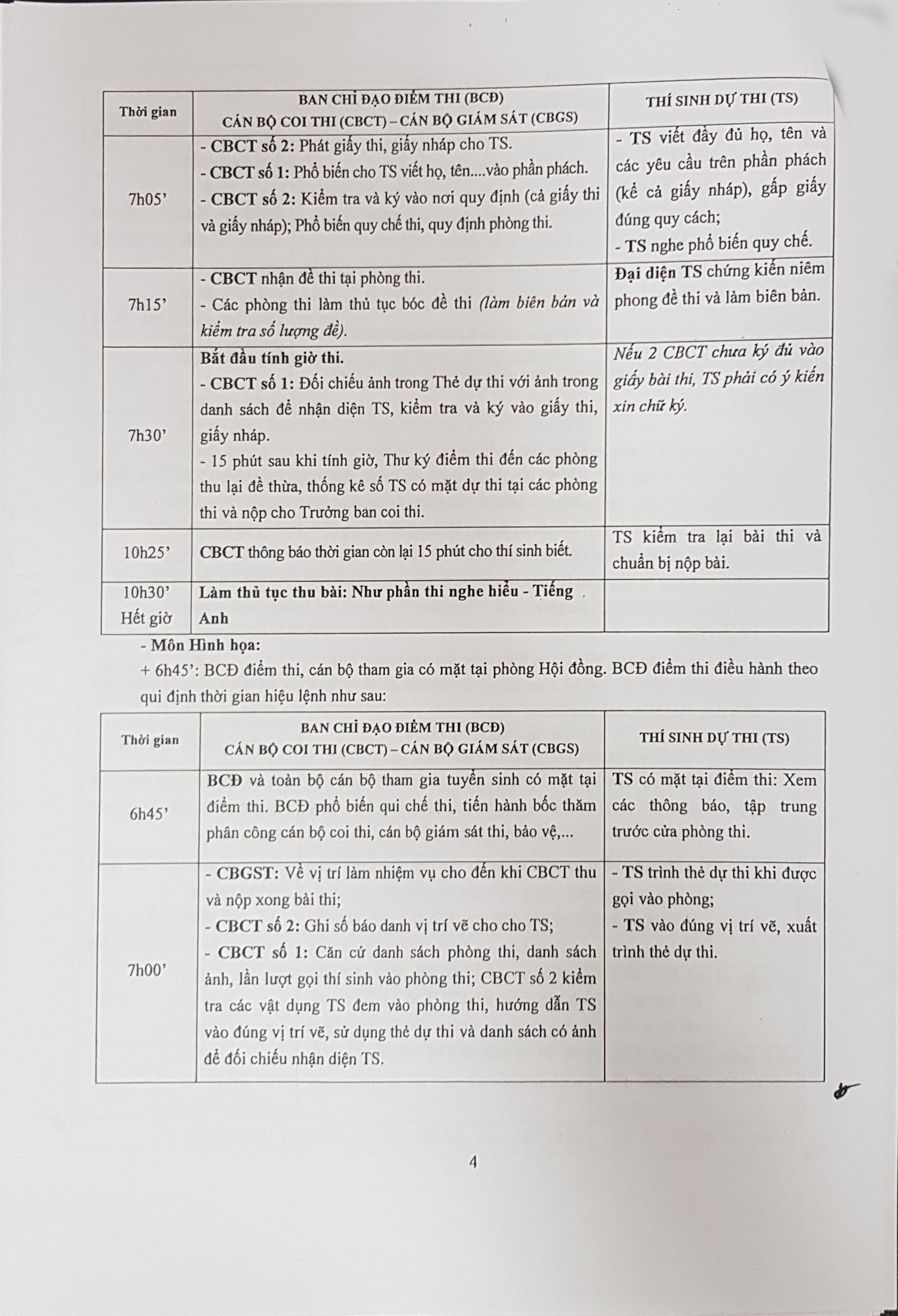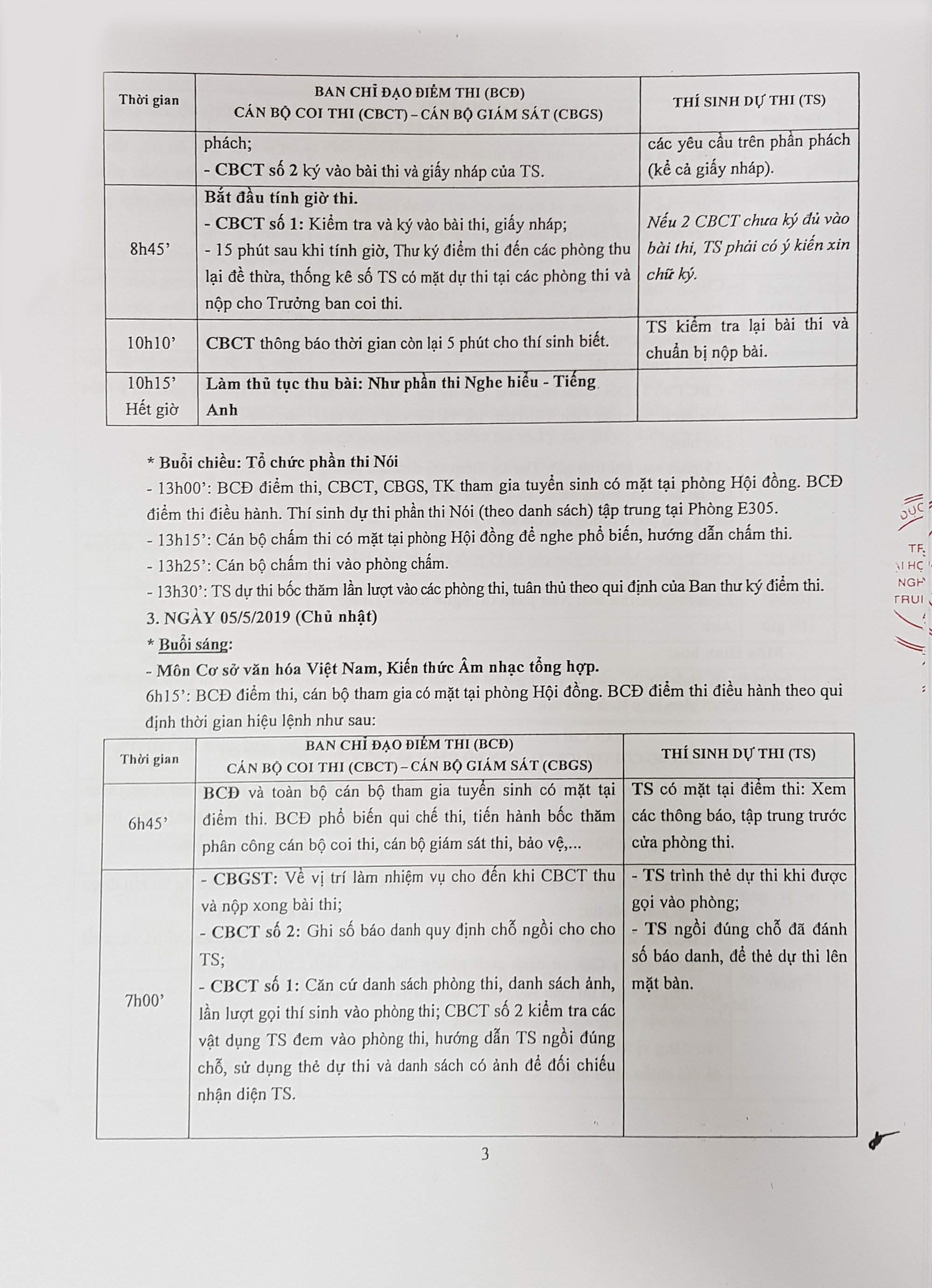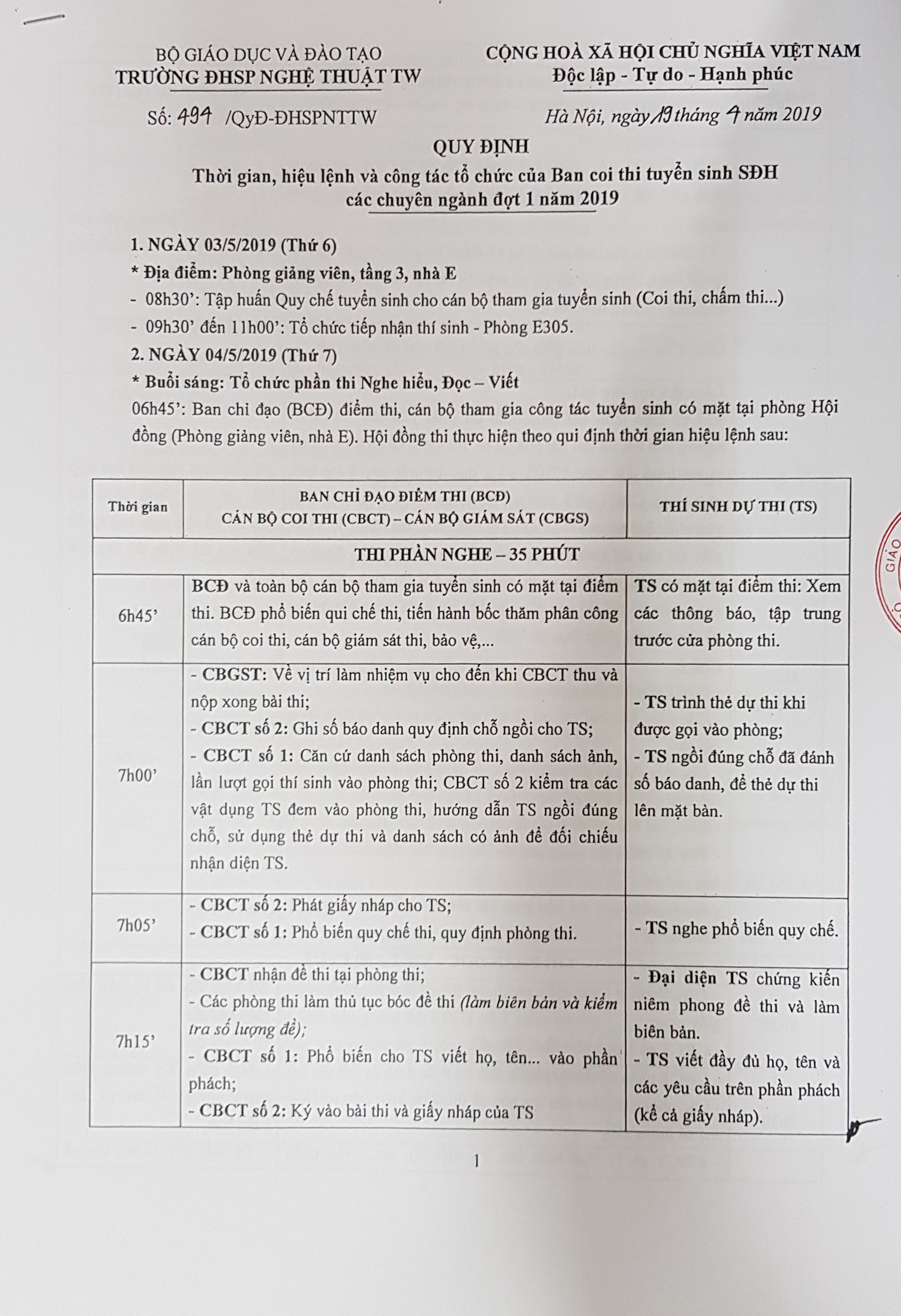 QUY ĐỊNH Thời gian, hiệu lệnh và công tác tổ chức của Ban coi thi tuyển sinh SĐH các chuyên ngành đợt 1 năm 2019