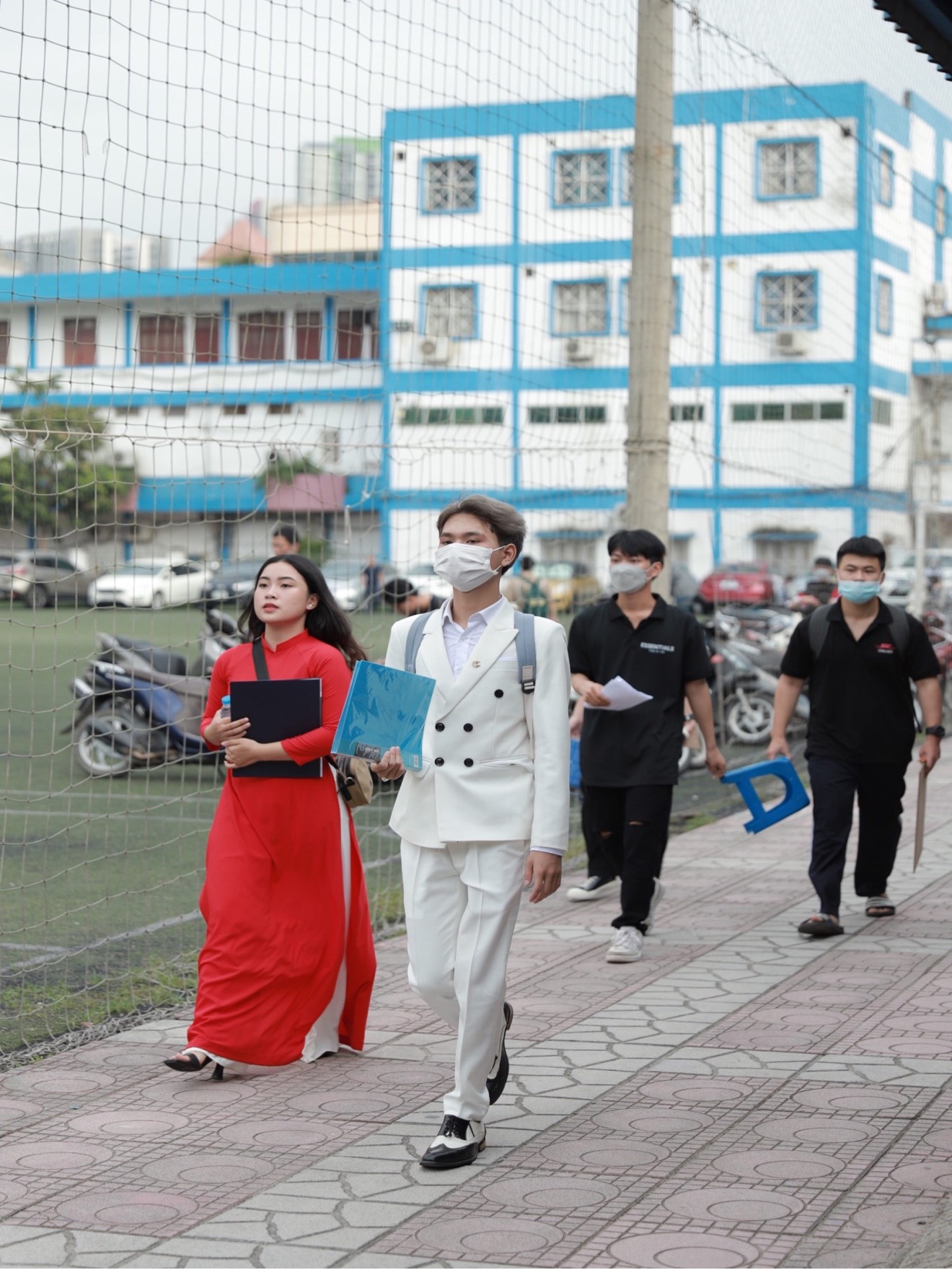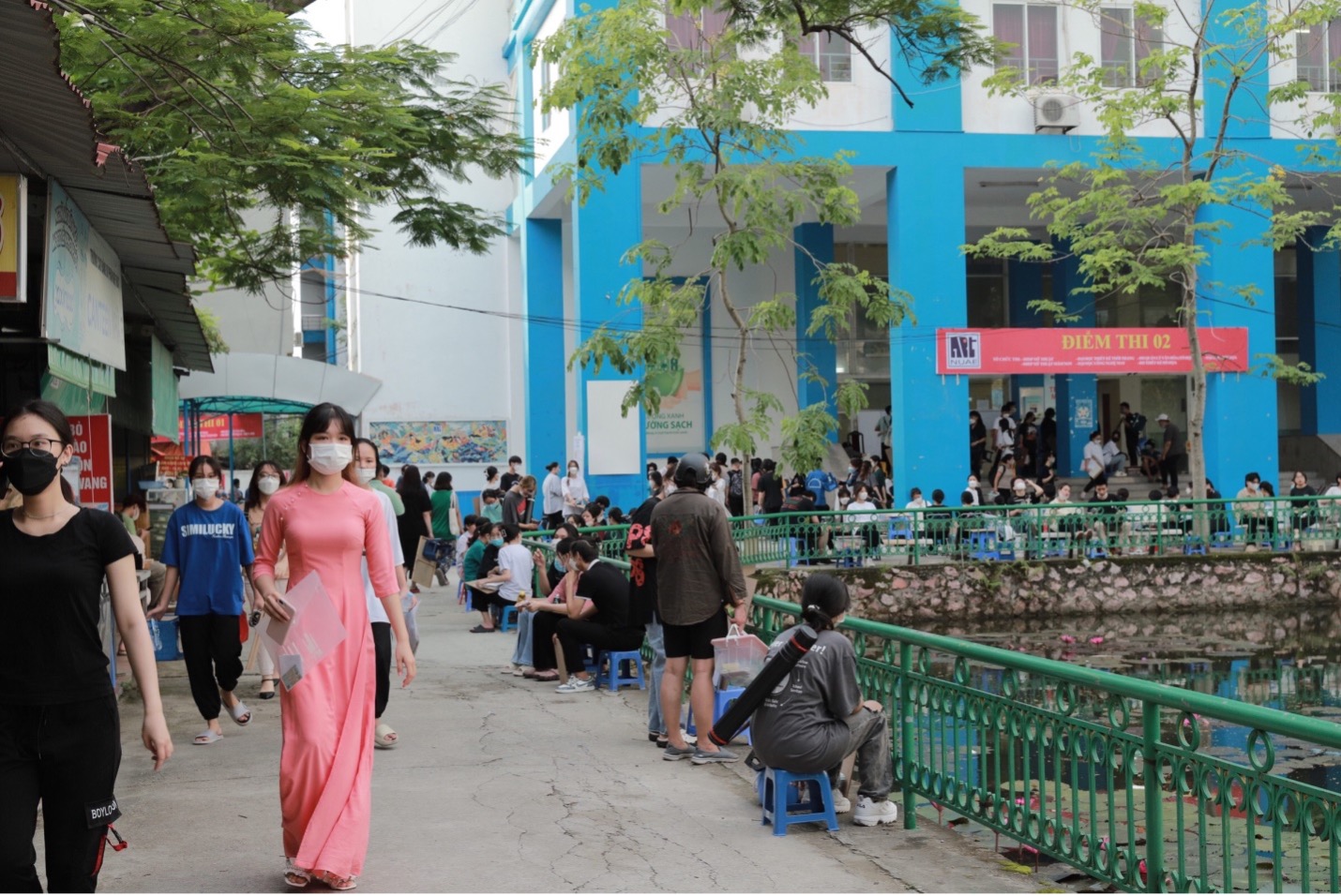 Thí sinh tụ tập đông đúc trước khi bước vào điểm thi