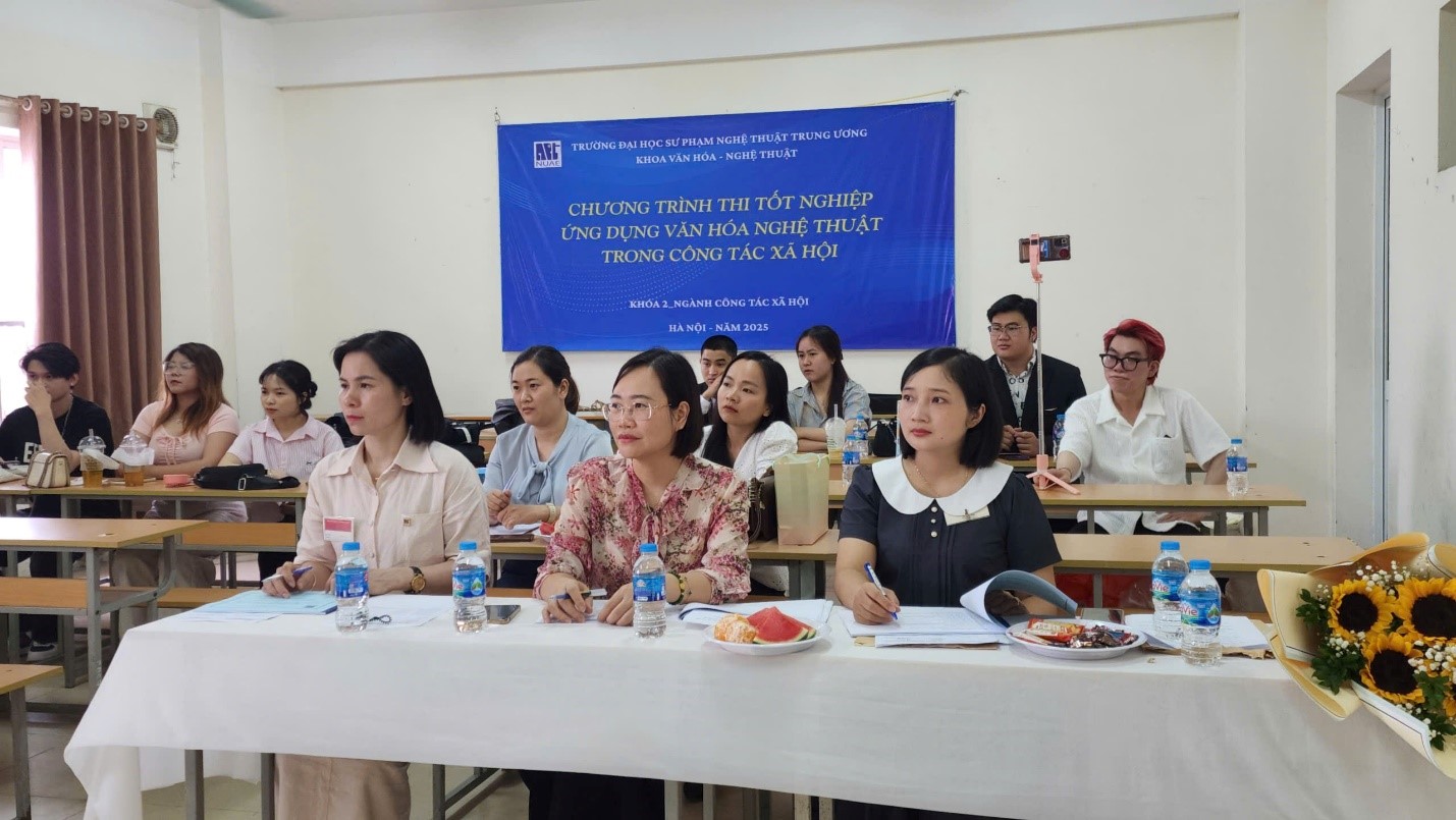 NUAE – Sáng ngày 16/6/2025, sinh viên Khóa 2 ngành Công tác xã hội (2021-2025) tham gia báo cáo học phần tốt nghiệp thực hành “Ứng dụng văn hóa nghệ thuật trong Công tác xã hội”.