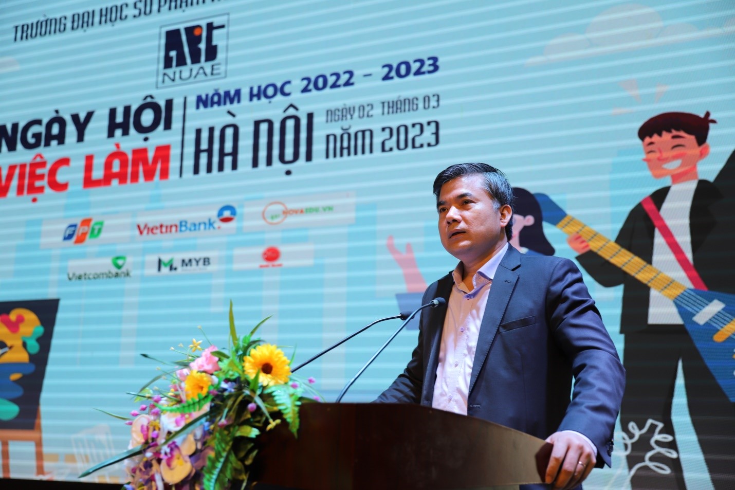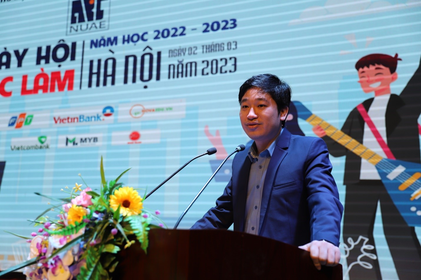 Phát biểu tại Ngày hội việc làm năm học 2022-2023 của NUAE, ông Bùi Văn Linh, Giám đốc Trung tâm Hỗ trợ đào tạo và Cung ứng nhân lực, Bộ Giáo dục và Đào tạo khẳng định sẽ cố gắng đồng hành cùng Nhà trường và doanh nghiệp có liên quan đến lĩnh vực đào tạo của trường để hỗ trợ tìm kiếm cơ hội việc làm cho các em sinh viên.