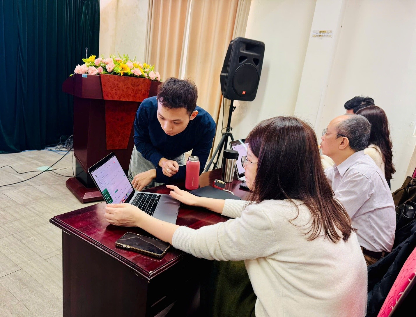 Chuyên gia giới thiệu và hướng dẫn cho giảng viên cách thức vận hành công cụ đánh giá trên LMS