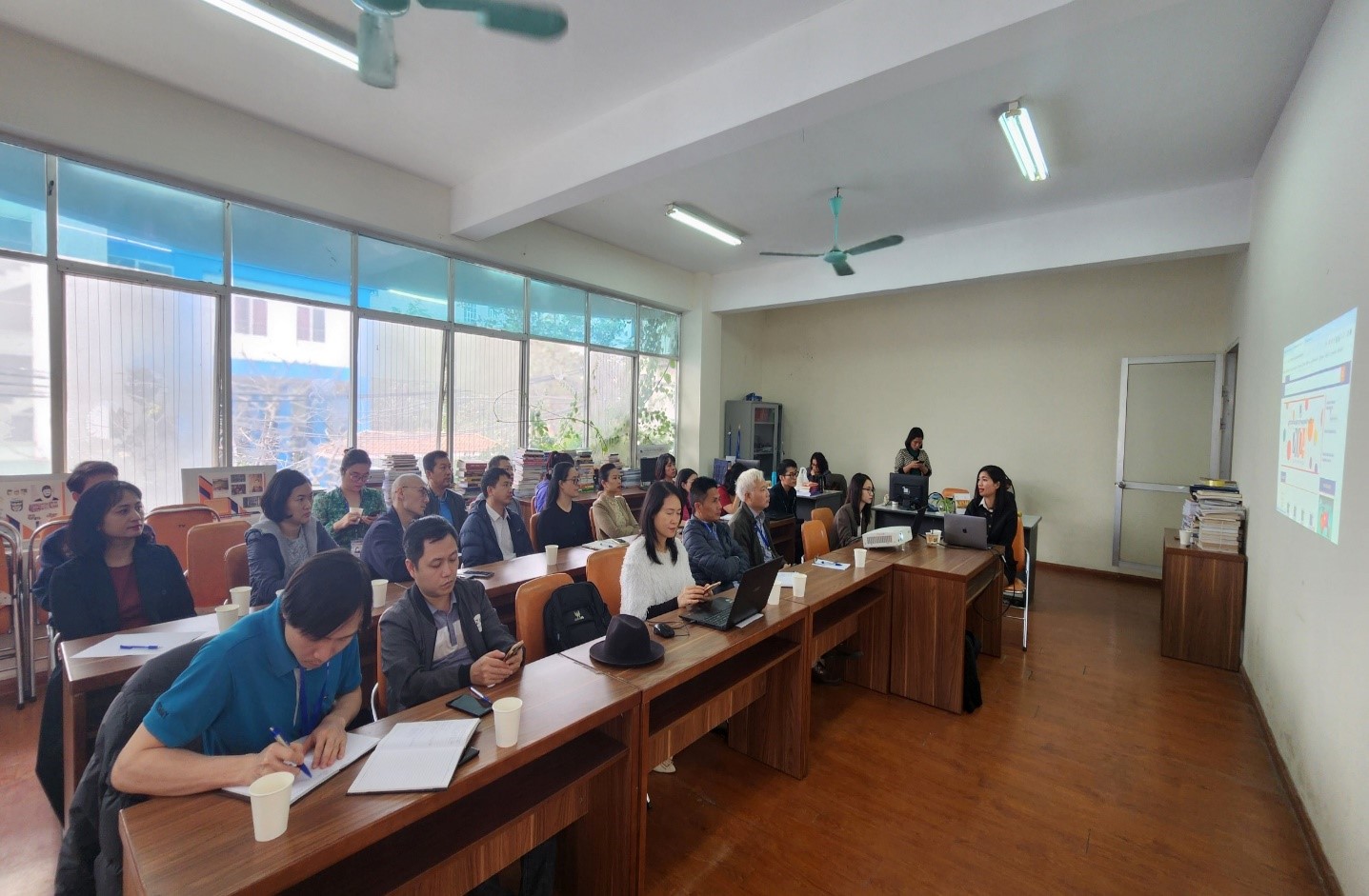 Tại buổi tập huấn, các cán bộ giảng viên được hướng dẫn trực tiếp những nội dung cơ bản về tìm kiếm tài liệu, khai thác thông tin từ các cơ sở dữ liệu của Thư viện, yêu cầu mượn/gia hạn tài liệu, yêu cầu bổ sung tài liệu, xem thông tin và lịch sử giao dịch với thư viện,… Buổi tập huấn đã diễn ra rất thành công và nhận được nhiều câu hỏi, sự quan tâm và tương tác tích cực từ các cán bộ, giảng viên trong trường.
