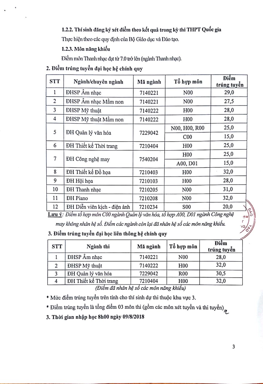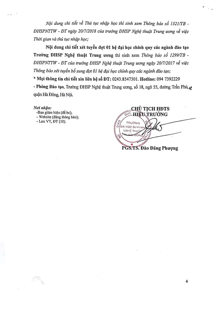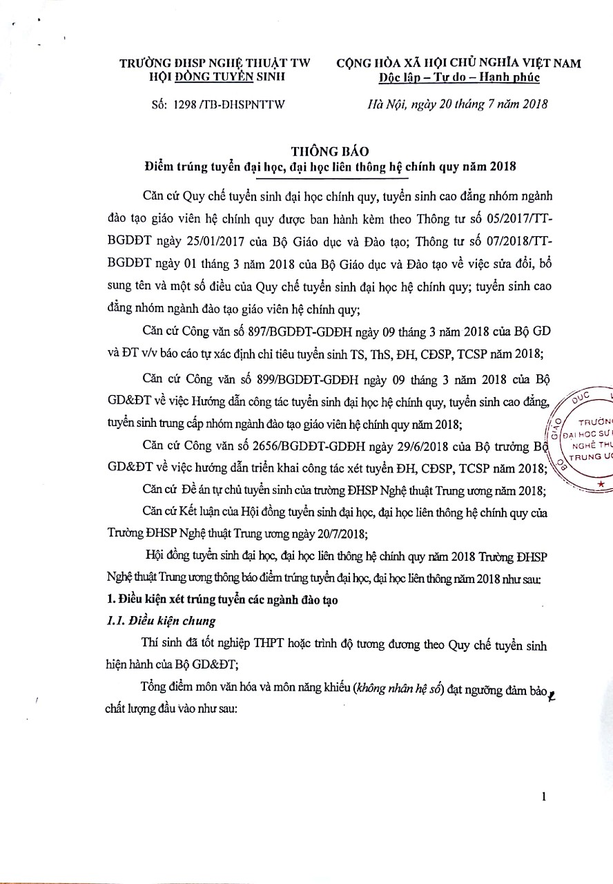 Thông báo số 1298/TB-ĐHSPNTTW, ngày 20 tháng 7 năm 2018 về Điểm trúng tuyển đại học, đại học liên thông hệ chính quy năm 2018