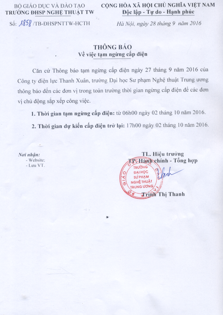 Thông báo tạm ngừng cấp điện ngày 02 tháng 10 năm 2016