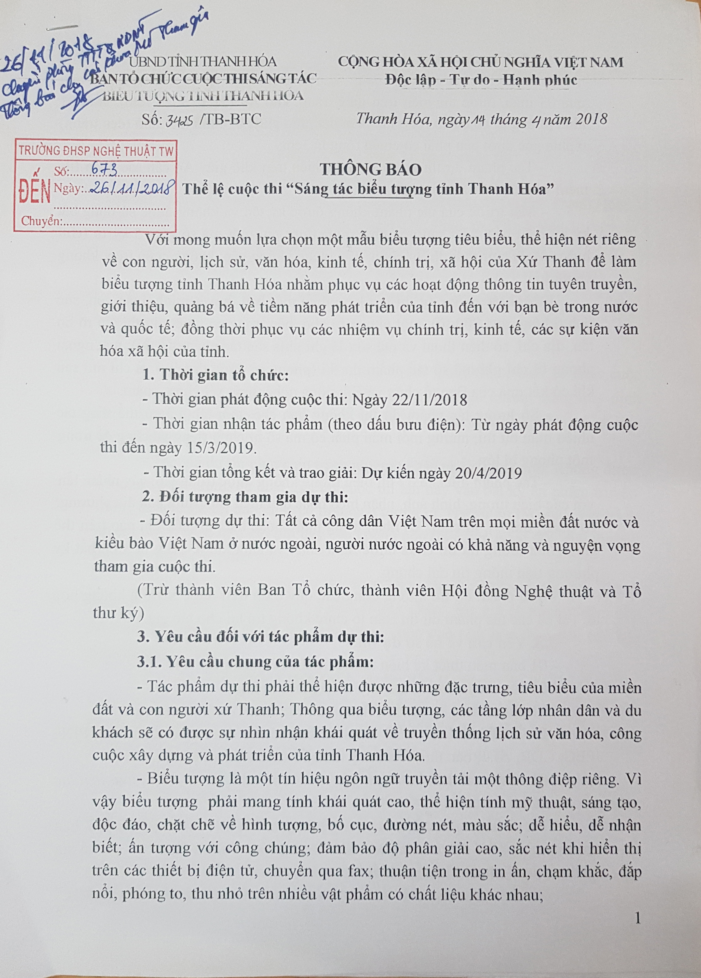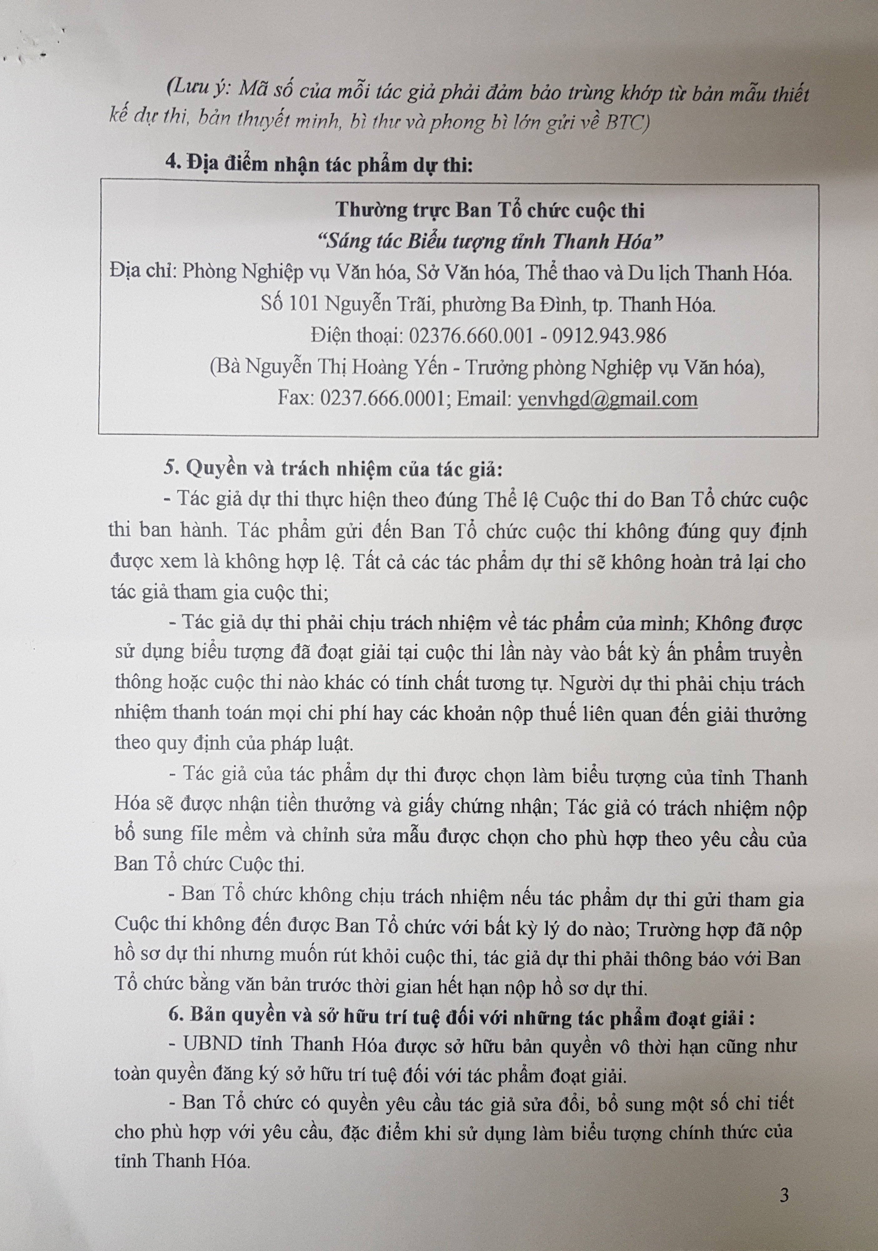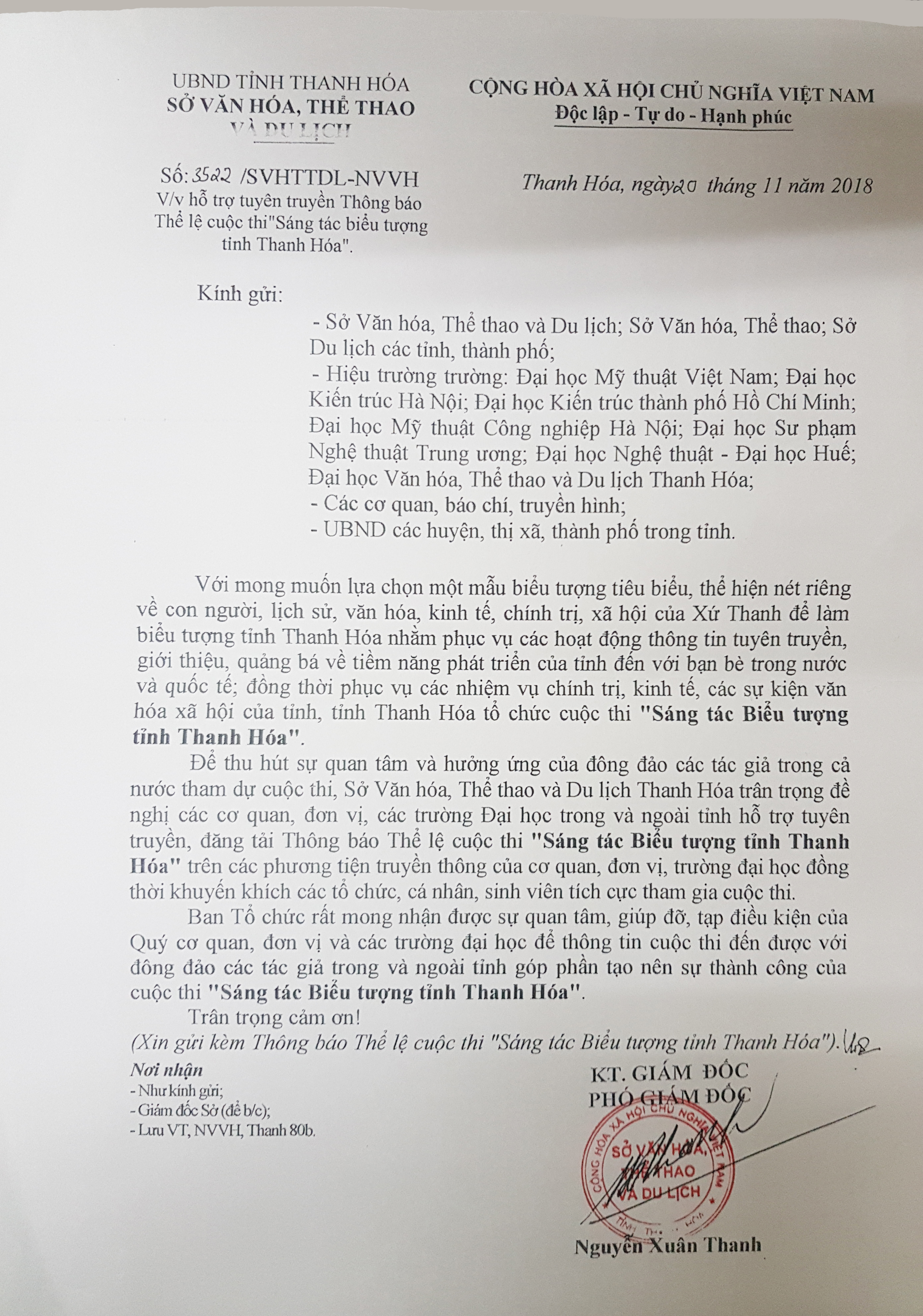 THÔNG BÁO Thể lệ cuộc thi “Sáng tác biểu tượng tỉnh Thanh Hóa”