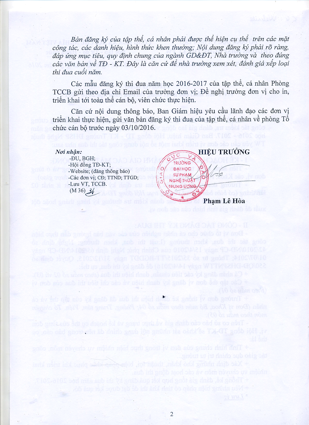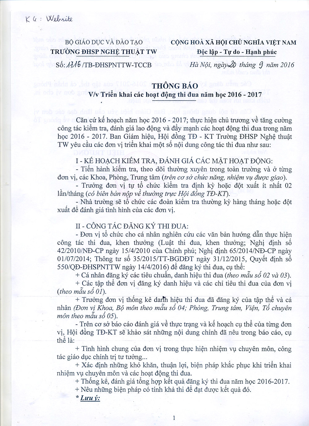 Thông báo triển khai các hoạt động thi đua năm học 2016 – 2017