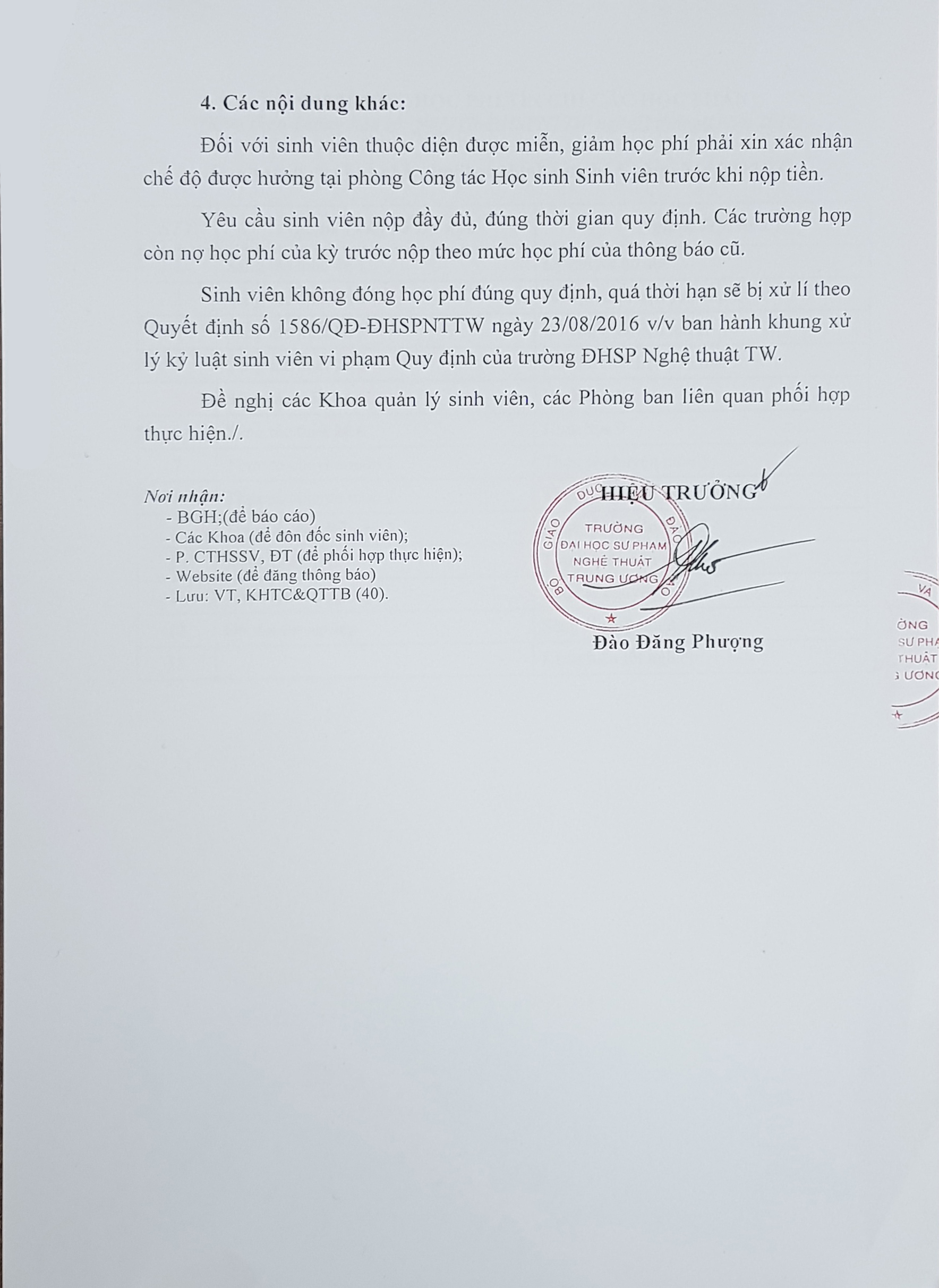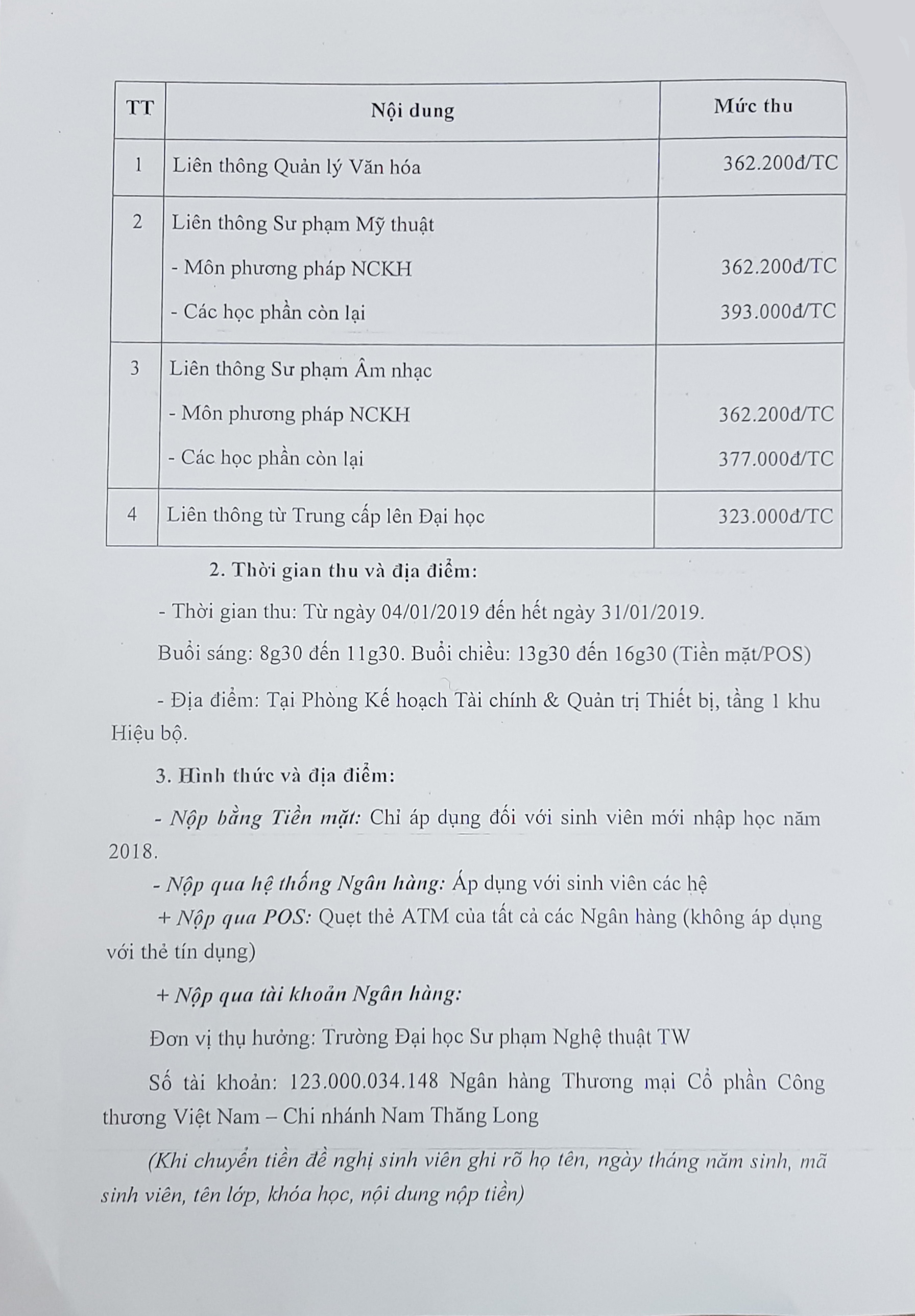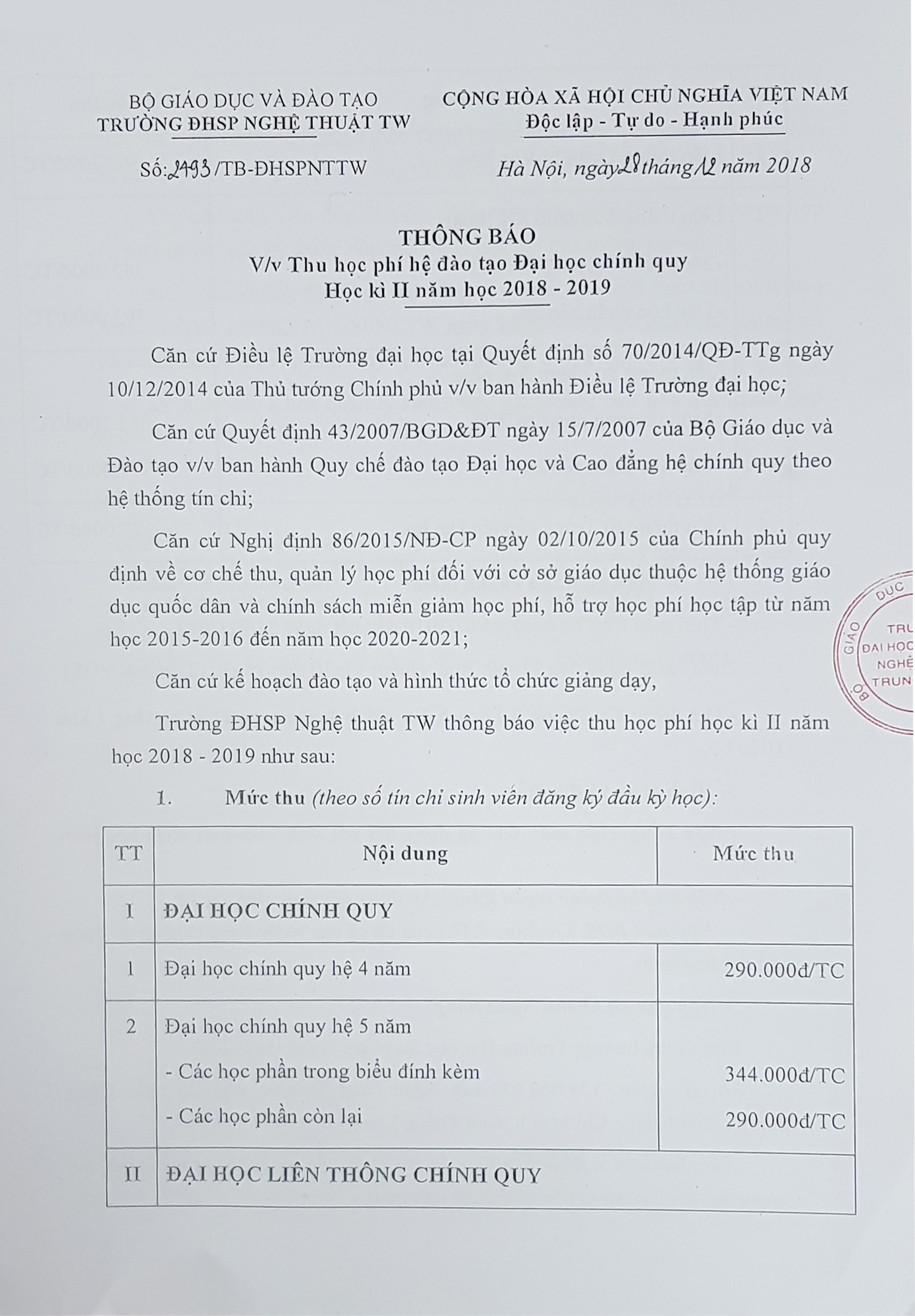 THÔNG BÁO V/v Thu học phí hệ đào tạo Đại học chính quy Học kì II năm học 2018-2019