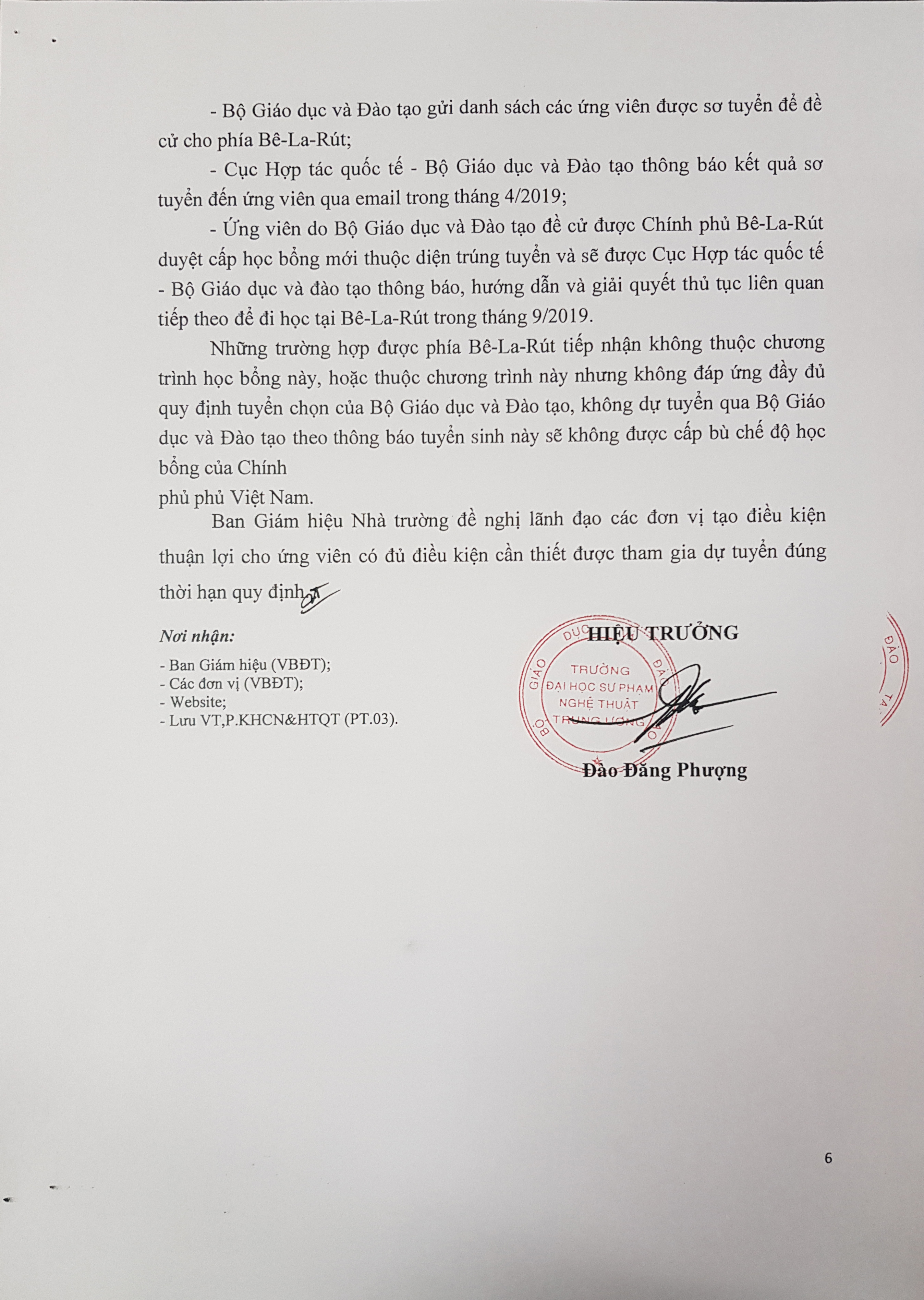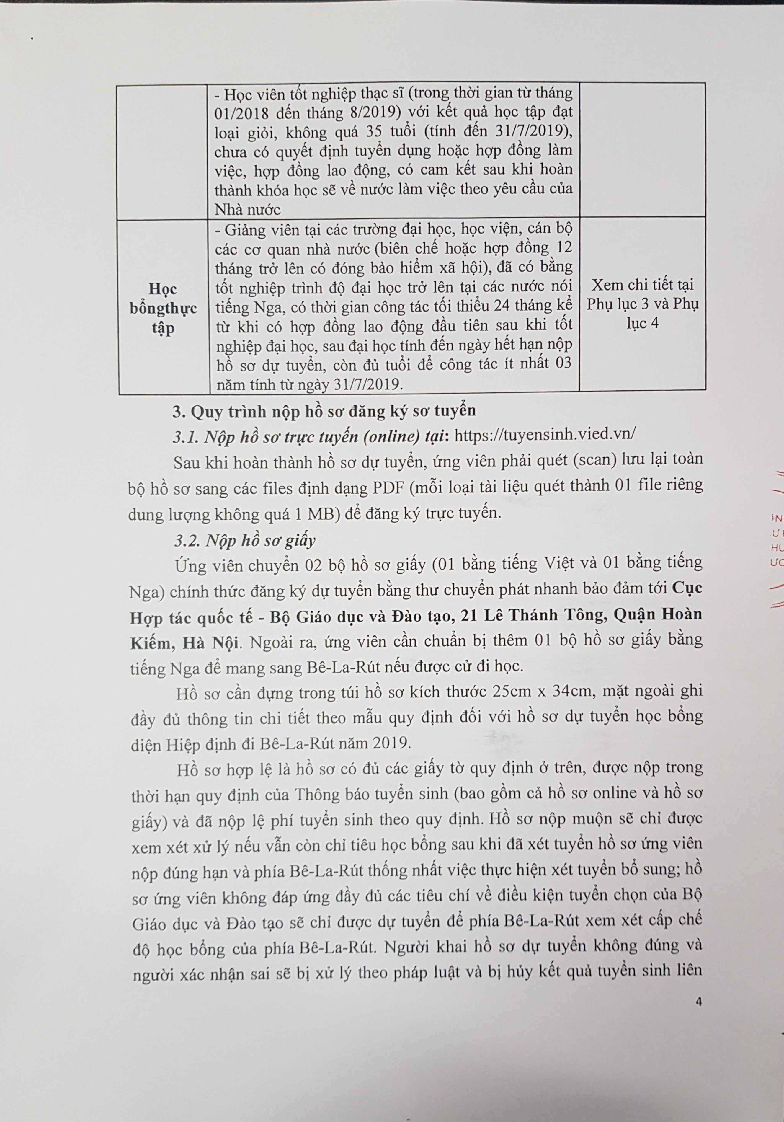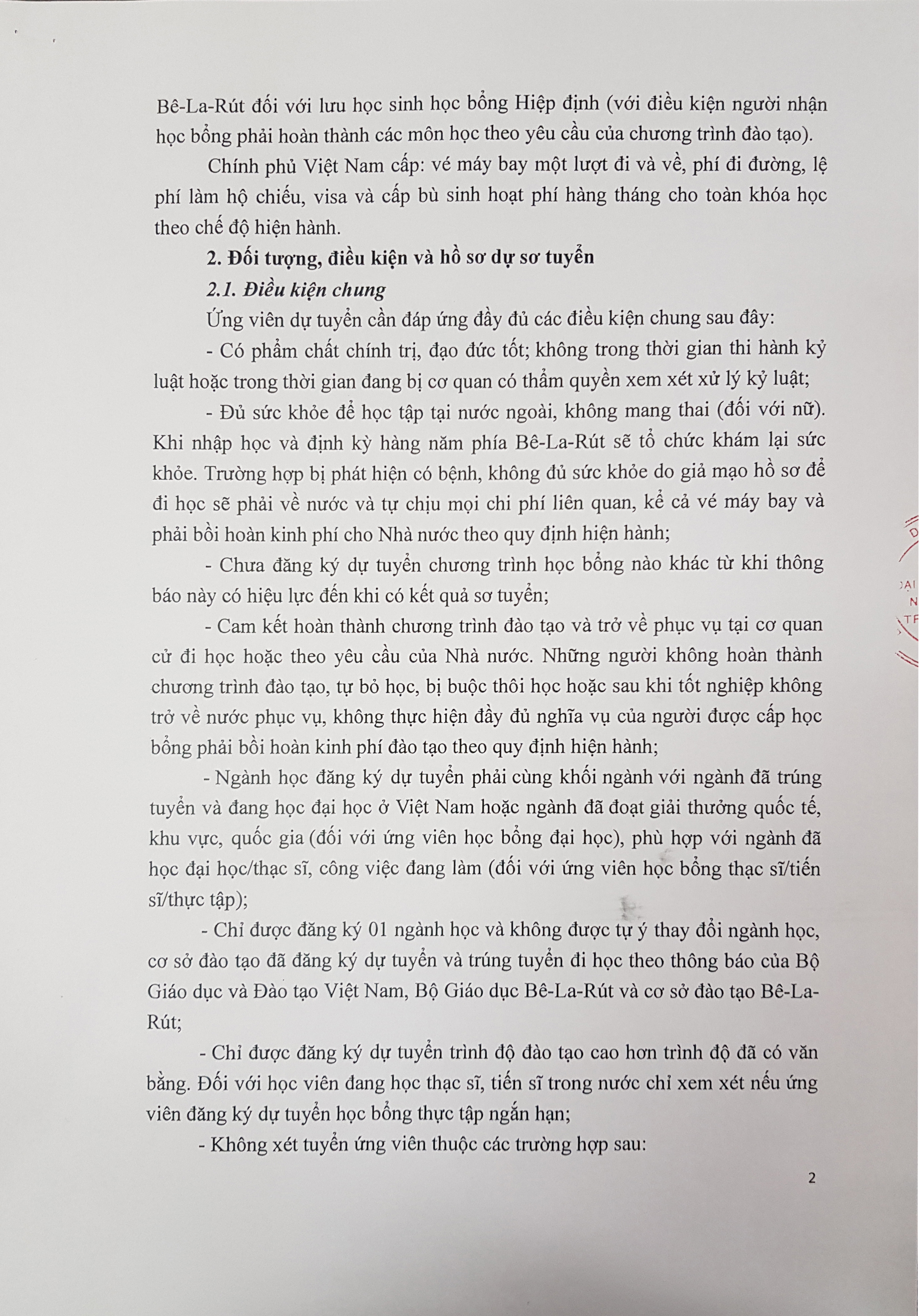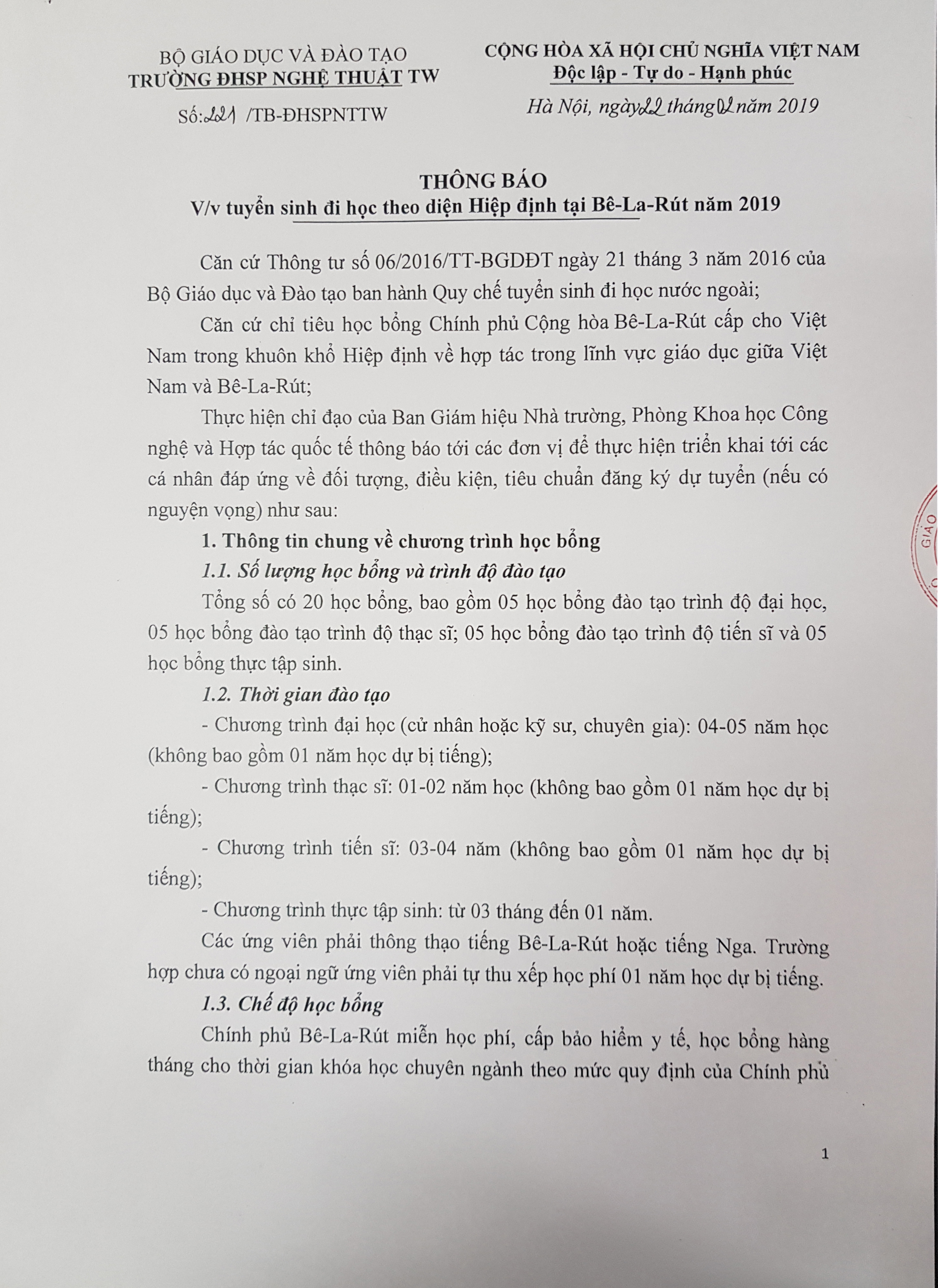 THÔNG BÁO V/v tuyển sinh đi học theo diện Hiệp định tại Bê-La-Rút năm 2019