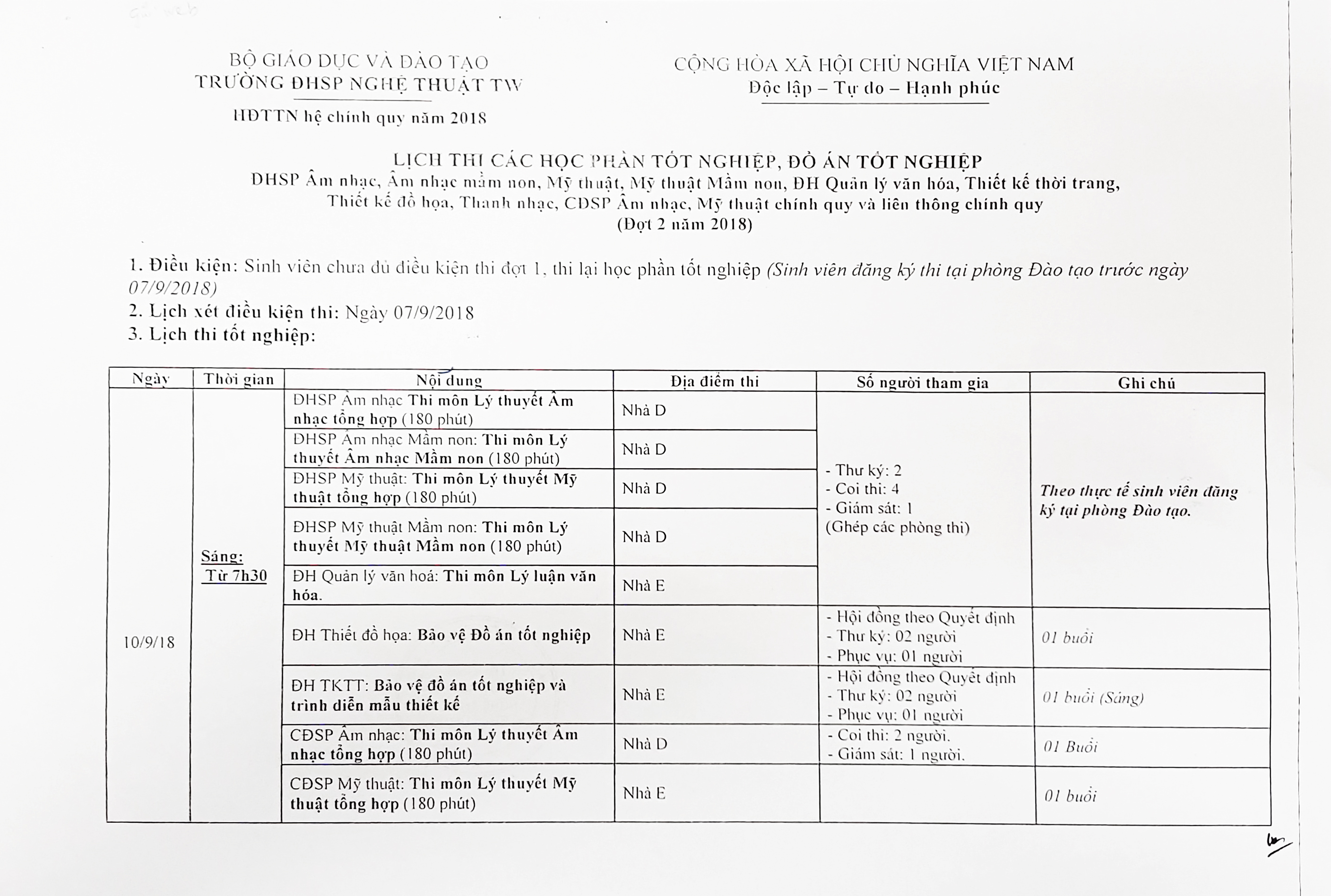 THÔNG BÁO Về lịch thi các học phần tốt nghiệp, đồ án tốt nghiệp (Đợt 2 năm 2018)