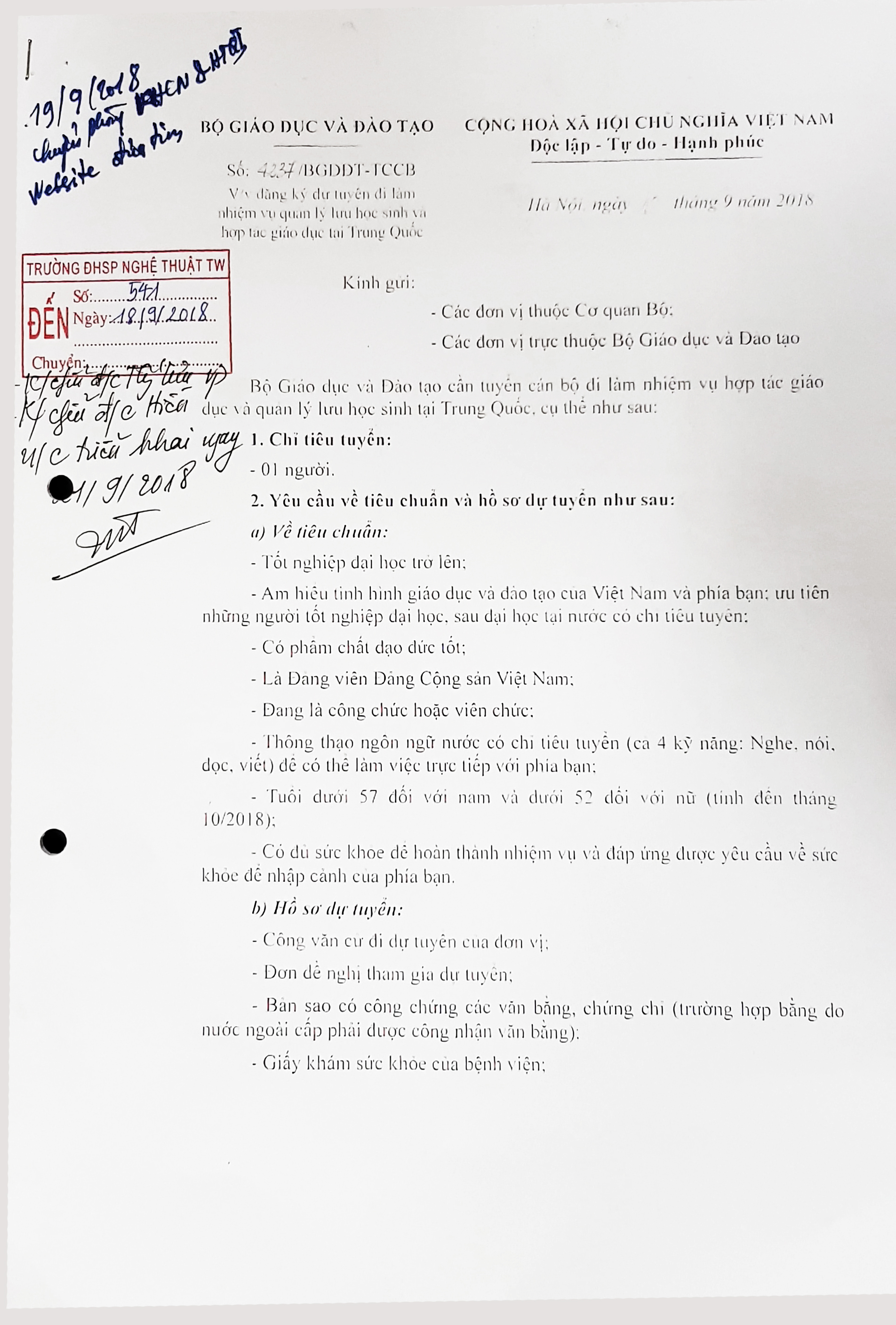 THÔNG BÁO Về về đăng ký dự tuyển đi làm nhiệm vụ quản lý lưu học sinh và hợp tác giáo dục tại Trung Quốc