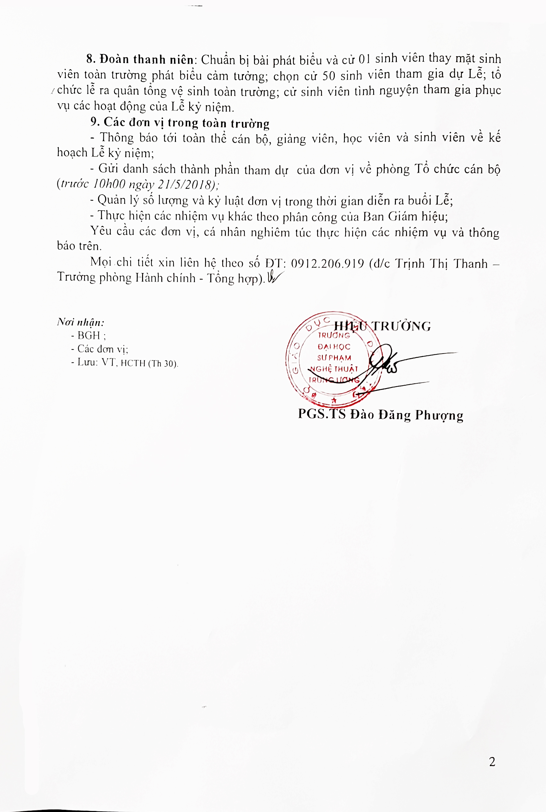 Thông báo về việc tổ chức Lễ kỷ niệm 12 năm ngày Thủ tướng Chính phủ ký Quyết định thành lập trường ĐHSP Nghệ thuật TW