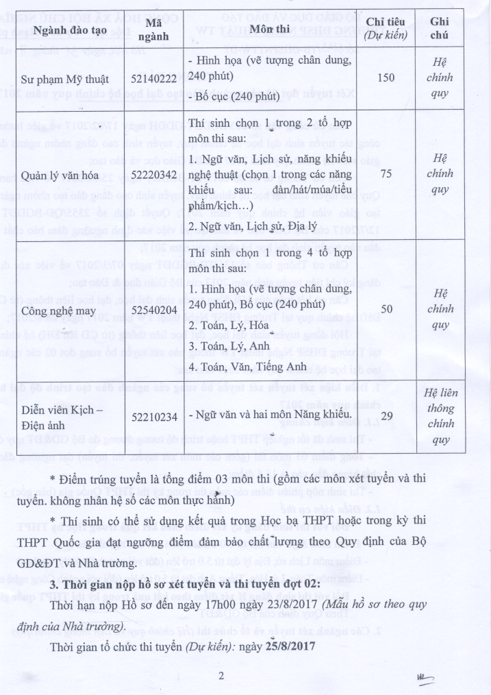 Thông báo xét tuyển đợt 02 các ngành đào tạo đại học hệ chính quy năm 2017