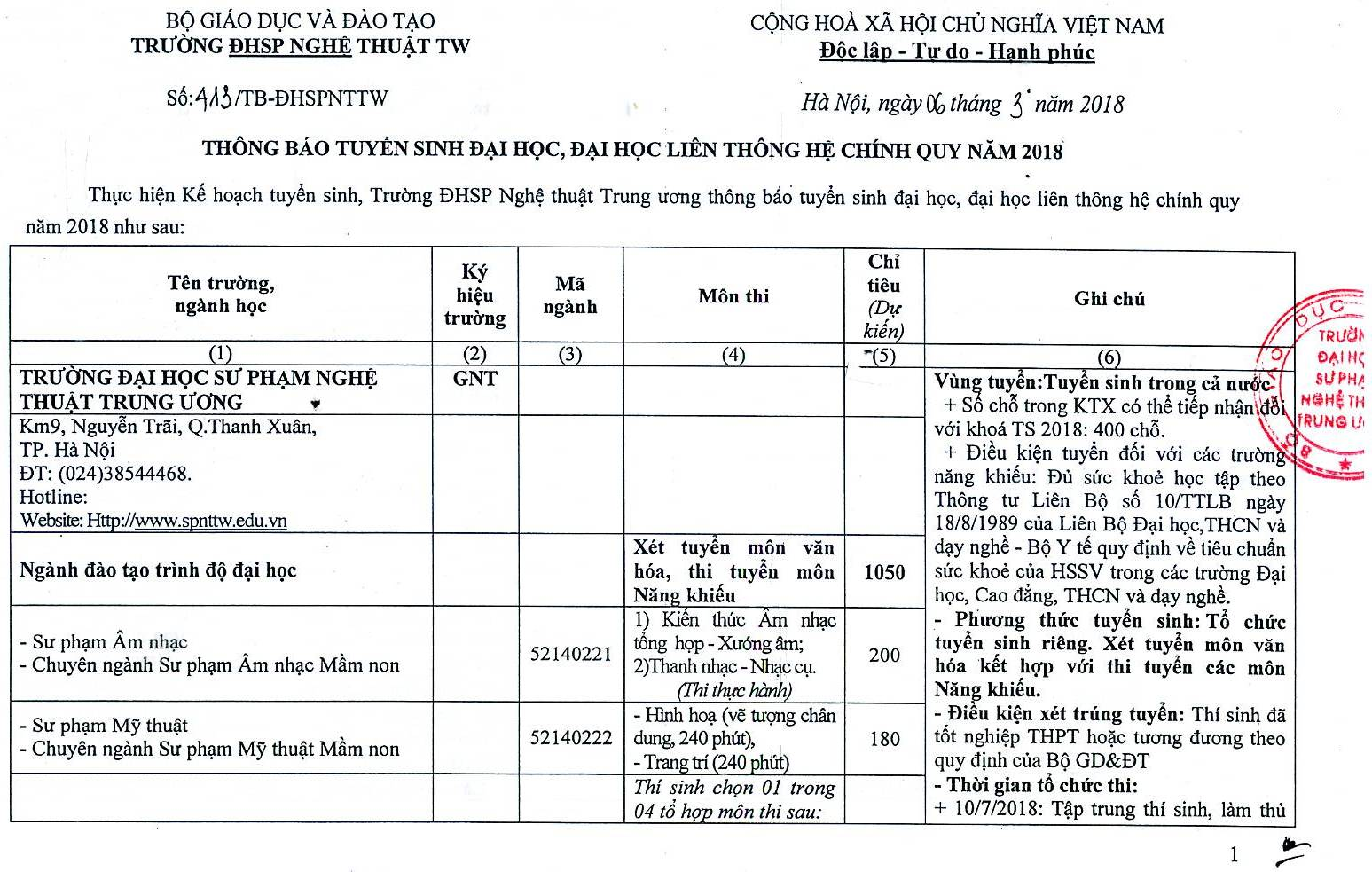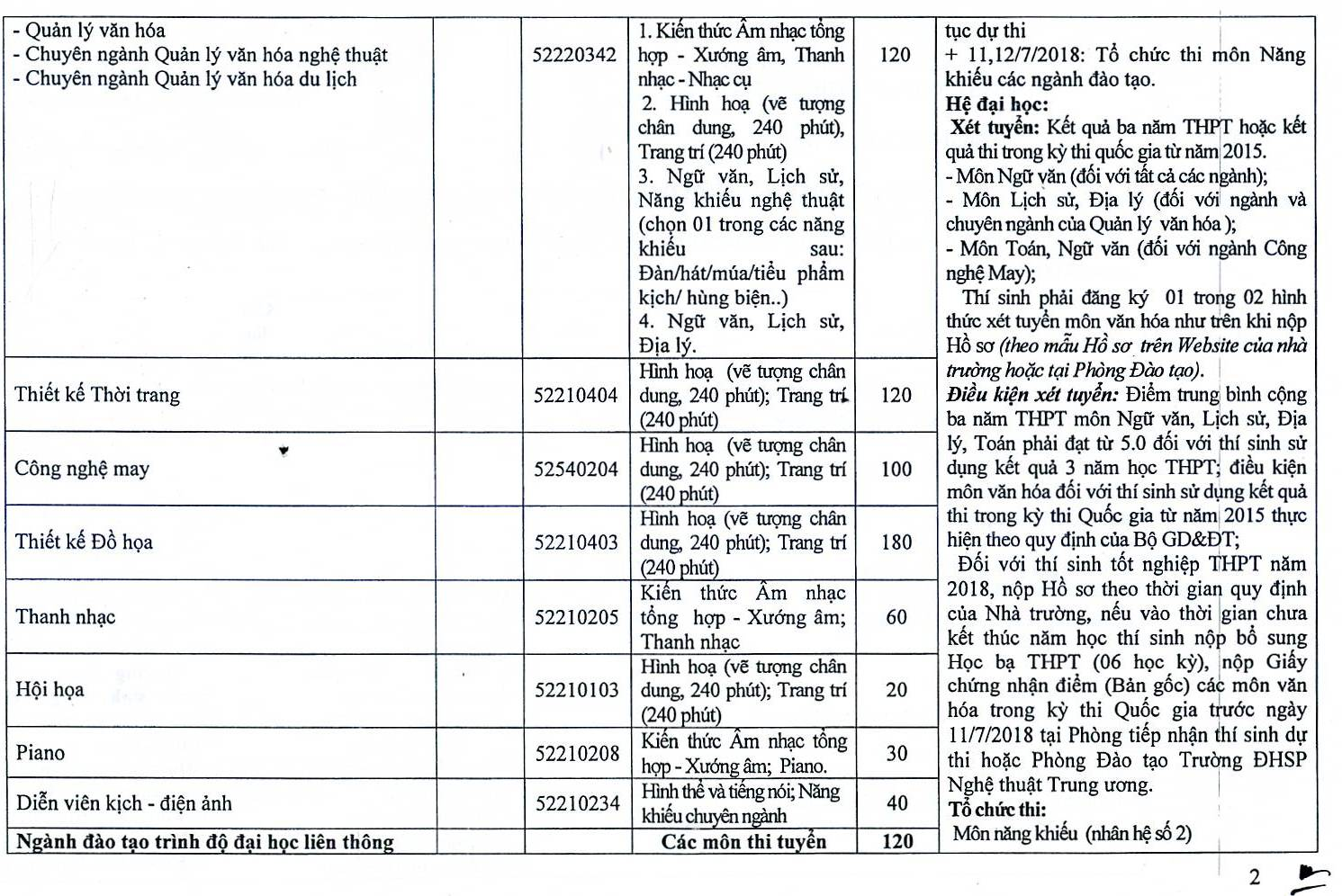 Thông tin tuyển sinh đại học, đại học liên thông hệ chính quy năm 2018 trường Đại học Sư phạm Nghệ thuật Trung ương