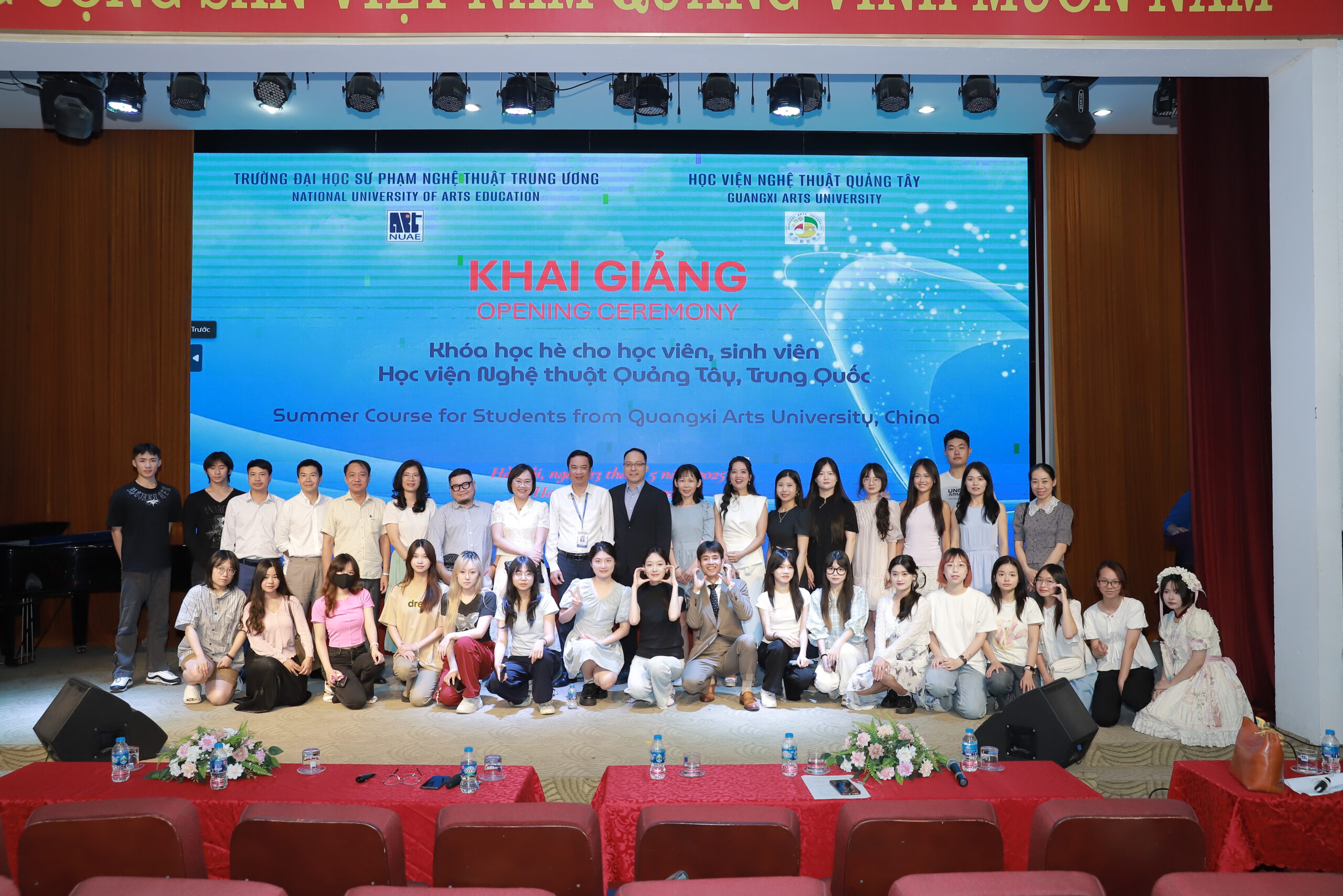 Chiều ngày 23/5, Trường Đại học Sư phạm Nghệ thuật Trung ương đã tổ chức buổi khai giảng khóa học hè dành cho các học viên, sinh viên đến từ Học viện Nghệ thuật Quảng Tây, Trung Quốc. Lễ khai giảng có sự tham gia của TS. Nguyễn Văn Định, Phó hiệu trưởng nhà trường cùng lãnh đạo các đơn vị tham gia tổ chức, bao gồm các phòng ban và khoa của Nhà trường.