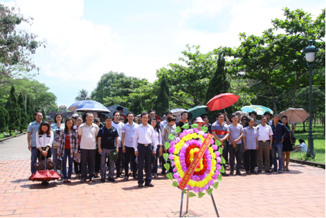 Ngày thứ hai của chuyến đi, đoàn đã dừng chân tại nghĩa trang Trường Sơn, PGS.TS Phạm Trọng Toàn cùng đoàn đã kính cẩn dâng hoa và thắp hương tại Đài tưởng niệm trung tâm nghĩa trang, bia tưởng niệm và thắp hương tại các phần mộ liệt sĩ.