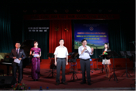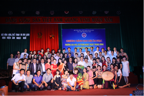 Đoàn của chúng tôi cũng đã có một buổi tối giao lưu chương trình nghệ thuật thật đầy ý nghĩa, thú vị và nhiều cảm xúc với Học viện âm nhạc Huế. Bên cạnh đó, đoàn đã được TS. Nguyễn Việt Đức – Giám đốc Học viện âm nhạc Huế và các giảng viên của học viện chia sẻ về tình hình học tập, giảng dạy, kinh nghiệm đào tạo về âm nhạc. Về phía Trường Đại học Sư phạm Nghệ thuật Trung ương, PGS. TS. Phạm Trọng Toàn cũng đã trình bày tóm tắt, ngắn gọn mục đích của chuyến đi thực tế chuyên môn và trao đổi phương pháp giảng dạy.