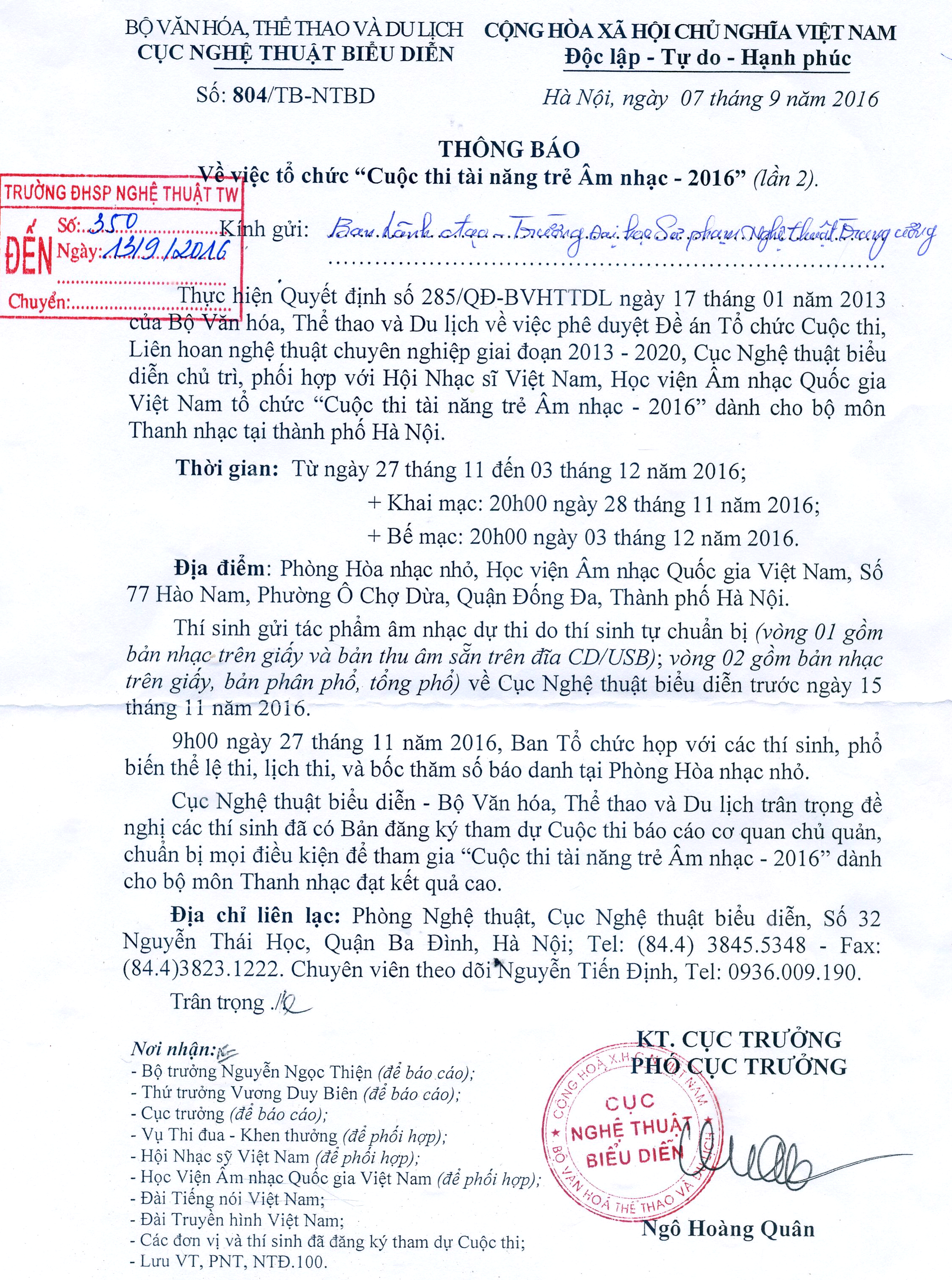 Tổ chức “Cuộc thi tài năng trẻ Việt Nam – 2016” (lần 2)