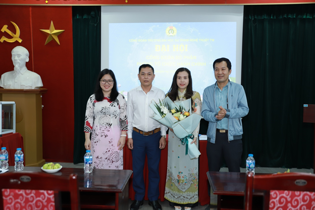 Đồng chí Đỗ Anh Tuấn – Chủ tịch Công đoàn Trường tặng hoa chúc mừng Ban chấp hành Công đoàn bộ phận phòng Tổ chức – Hành chính nhiệm kỳ 2023 – 2028
