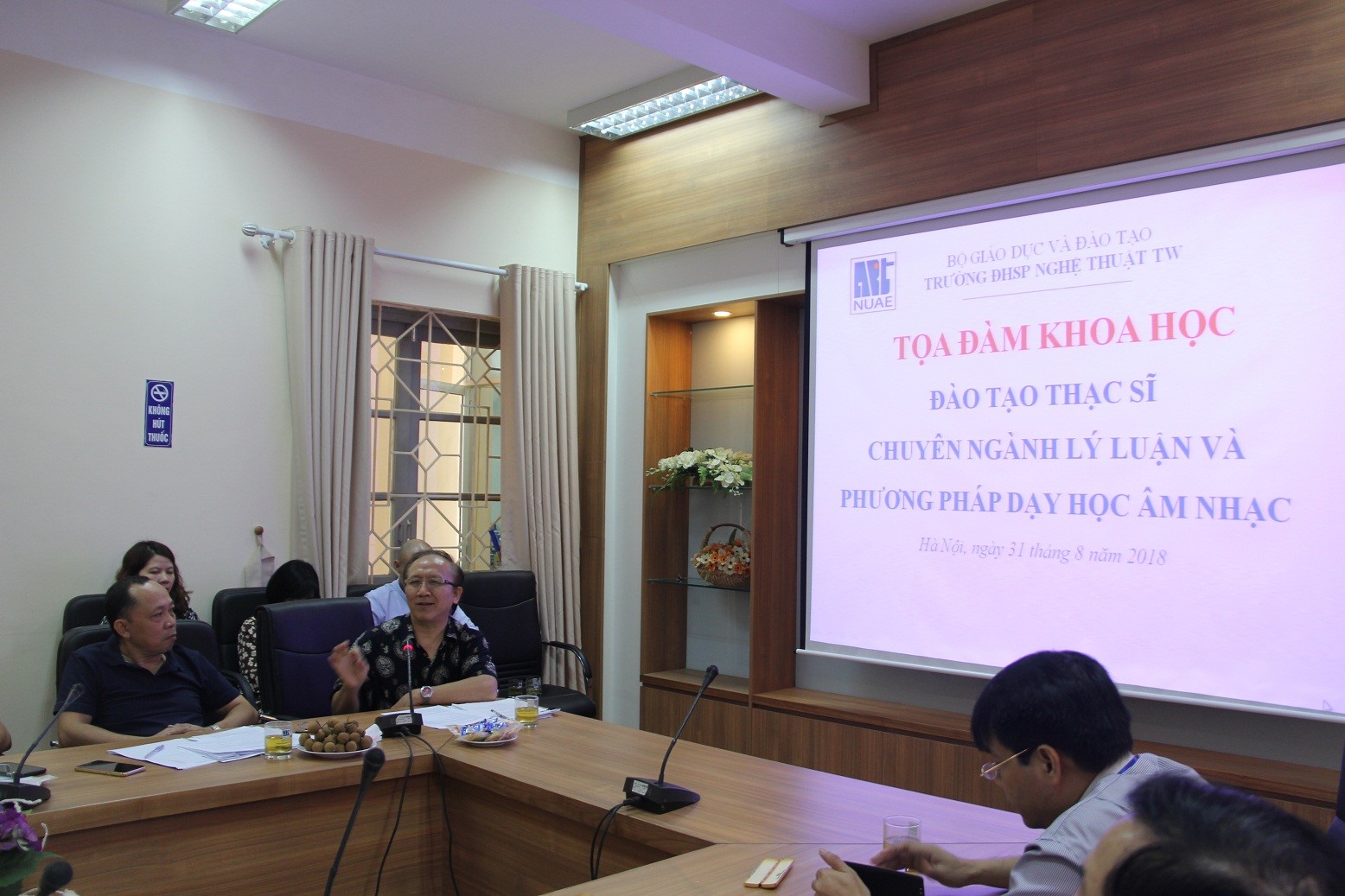 Phát biểu khai mạc buổi Toạ đàm, PGS.TS. Đào Đăng Phượng – Hiệu trưởng Nhà trường đã ghi nhận và đánh giá cao sự nỗ lực, sự phối hợp chặt chẽ của các nhà khoa học trong và ngoài trường trong việc đào tạo thạc sĩ tại Trường ĐHSP Nghệ thuật TW nói chung và đào tạo thạc sĩ chuyên ngành Lý luận và Phương pháp dạy học Âm nhạc nói riêng. Đồng thời, mong muốn nhận được nhiều ý kiến quý báu của các nhà khoa học, giảng viên nhằm nâng cao hơn nữa chất lượng đào tạo sau đại học Nhà trường.