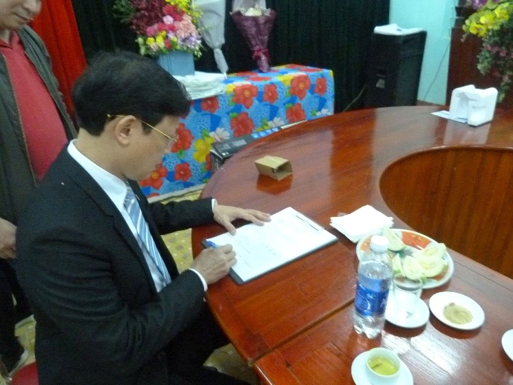 PGS.TS. Đào Đăng Phượng – Hiệu trưởng Trường ĐHSP Nghệ thuật TW ký biên bản trao tặng thiết bị học tập cho trường Trung học Cơ sở Minh Hạc