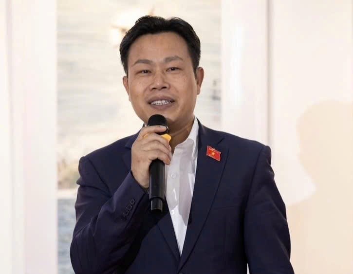 PGS.TS. Lê Vinh Hưng, Phó Bí thư Đảng uỷ, Hiệu trưởng Trường ĐHSP Nghệ thuật TW, đại diện BTC, đại diện đơn vị chủ trì tổ chức Triển lãm Mỹ thuật Quốc tế 2025 phát biểu tại buổi lễ