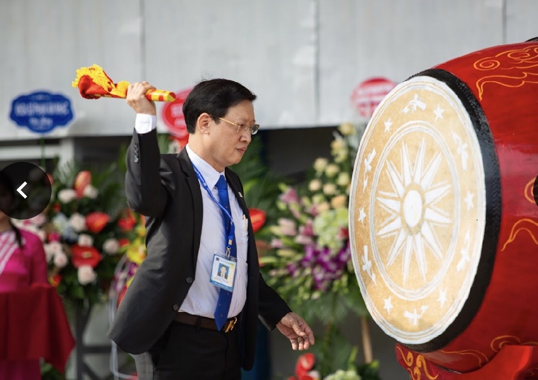 PGS.TS Đào Đăng Phượng – Bí thư Đảng ủy – Hiệu trưởng nhà trường đánh trống khai giảng.