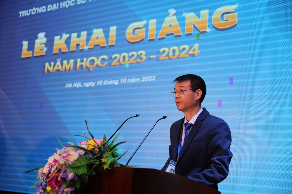 Phát biểu tại Lễ Khai giảng, PGS.TS. Lê Vinh Hưng – Phó Hiệu trưởng phụ trách trường cho biết, trong năm học 2022 – 2023 vừa qua tập thể Trường ĐHSP Nghệ thuật TW đã đạt được nhiều kết quả rất đáng tự hào trên tất cả lĩnh vực. Điểm sáng được ghi nhận và trân trọng là Nhà trường đã mở thêm 01 mã ngành Tiến sĩ Lý luận và Phương pháp dạy học bộ môn Mĩ thuật và chính thức tuyển sinh các mã ngành Tiến sĩ Văn hóa học, Thạc sĩ Mĩ thuật Ứng dụng; Chất lượng tuyển sinh, đào tạo và quản lý đào tạo, nghiên cứu khoa học tiếp tục được khẳng định, đổi mới phương pháp dạy học, kiểm tra đánh giá theo hướng phát triển năng lực; Công tác kiểm định chất lượng giáo dục ngày càng được chú trọng, Nhà trường đã thực hiện quy trình kiểm tra, đánh giá các cơ sở giáo dục lần 2 và dự kiến sẽ hoàn thành vào cuối năm 2023; Đề án chuyển đổi số được thực hiện theo chỉ đạo của Bộ Giáo dục và Đào tạo; Hợp tác Quốc tế được đẩy mạnh; Cơ sở vật chất của Nhà trường ngày một được quan tâm, đầu tư phục vụ cho hoạt động giảng dạy, học tập và sinh hoạt của giảng viên, học viên, sinh viên.