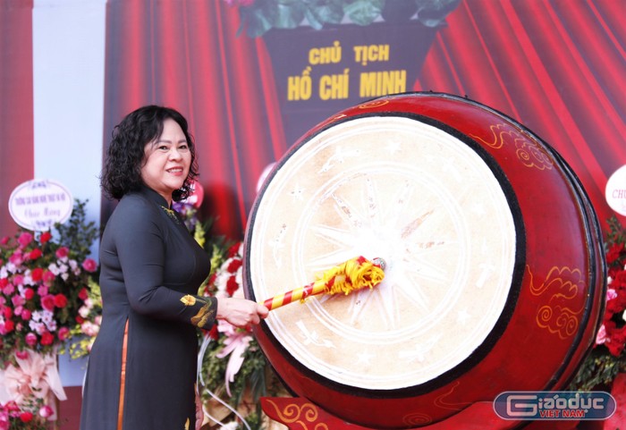 Thứ trưởng Bộ Giáo dục và Đào tạo Ngô Thị Minh đánh tiếng trống khai trường, mở ra năm học mới tại ngôi trường đào tạo sư phạm nghệ thuật.