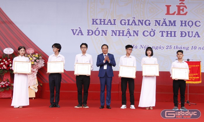 Thứ trưởng Ngô Thị Minh cũng trao bằng khen của Bộ trưởng Bộ Giáo dục và Đào tạo cho các tập thể và cá nhân xuất sắc trong năm học 2021-2022. |