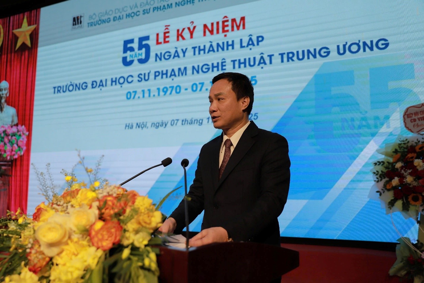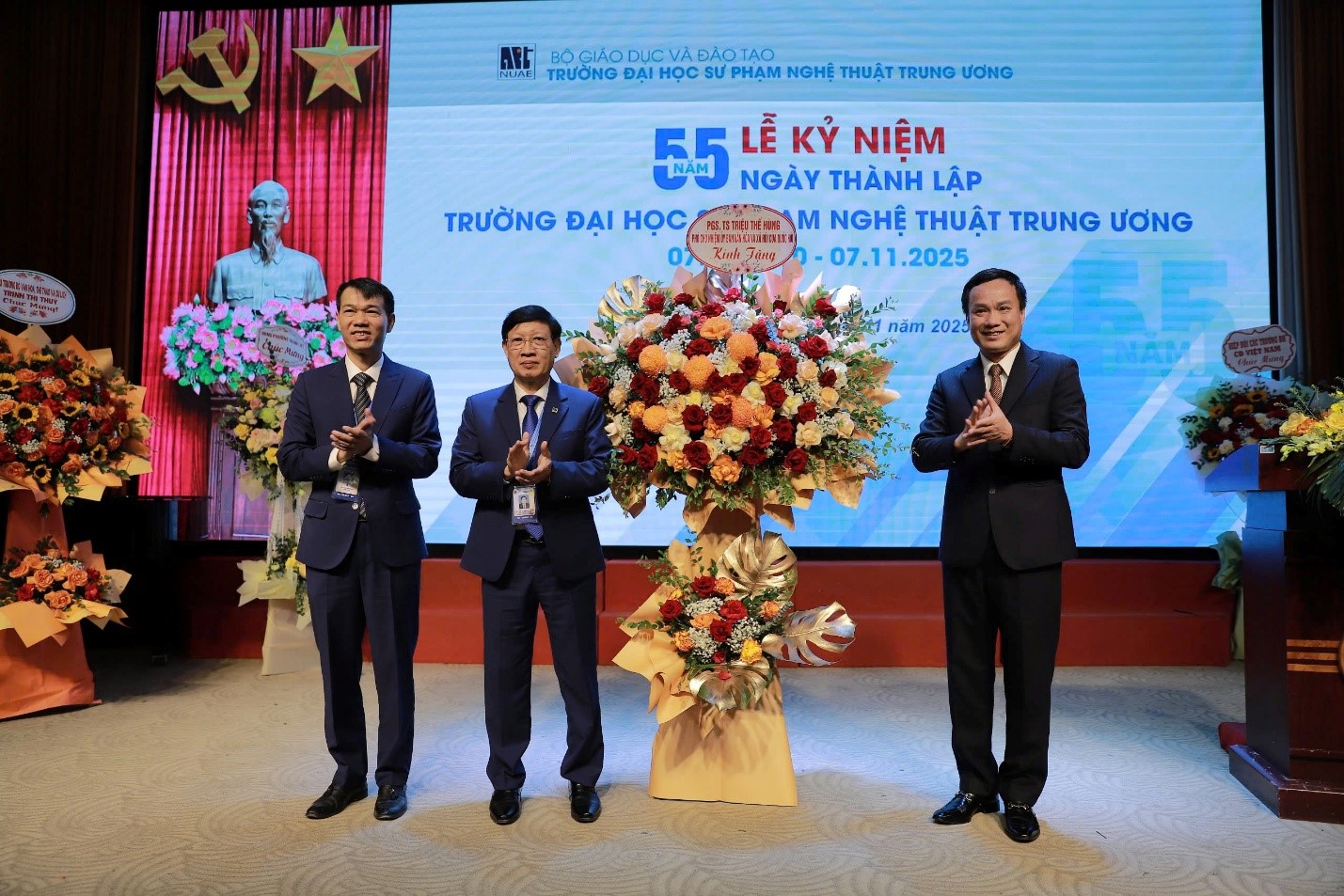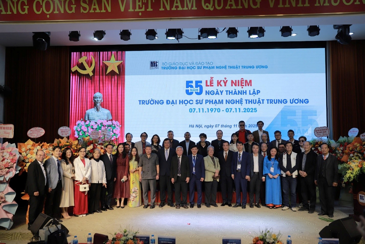 Sáng nay 07/11, Trường ĐHSP Nghệ thuật TW đã long trọng tổ chức Lễ kỷ niệm 55 năm ngày truyền thống (07/11/1970 – 07/11/2025). Buổi lễ là dịp để các thế hệ cán bộ, giảng viên, học viên, sinh viên ôn lại chặng đường 55 năm xây dựng và phát triển, tri ân những đóng góp to lớn của các thế hệ nhà giáo, đồng thời khẳng định vị thế và vai trò tiên phong của Nhà trường trong sự nghiệp đào tạo giáo viên và phát triển giáo dục nghệ thuật nước nhà.